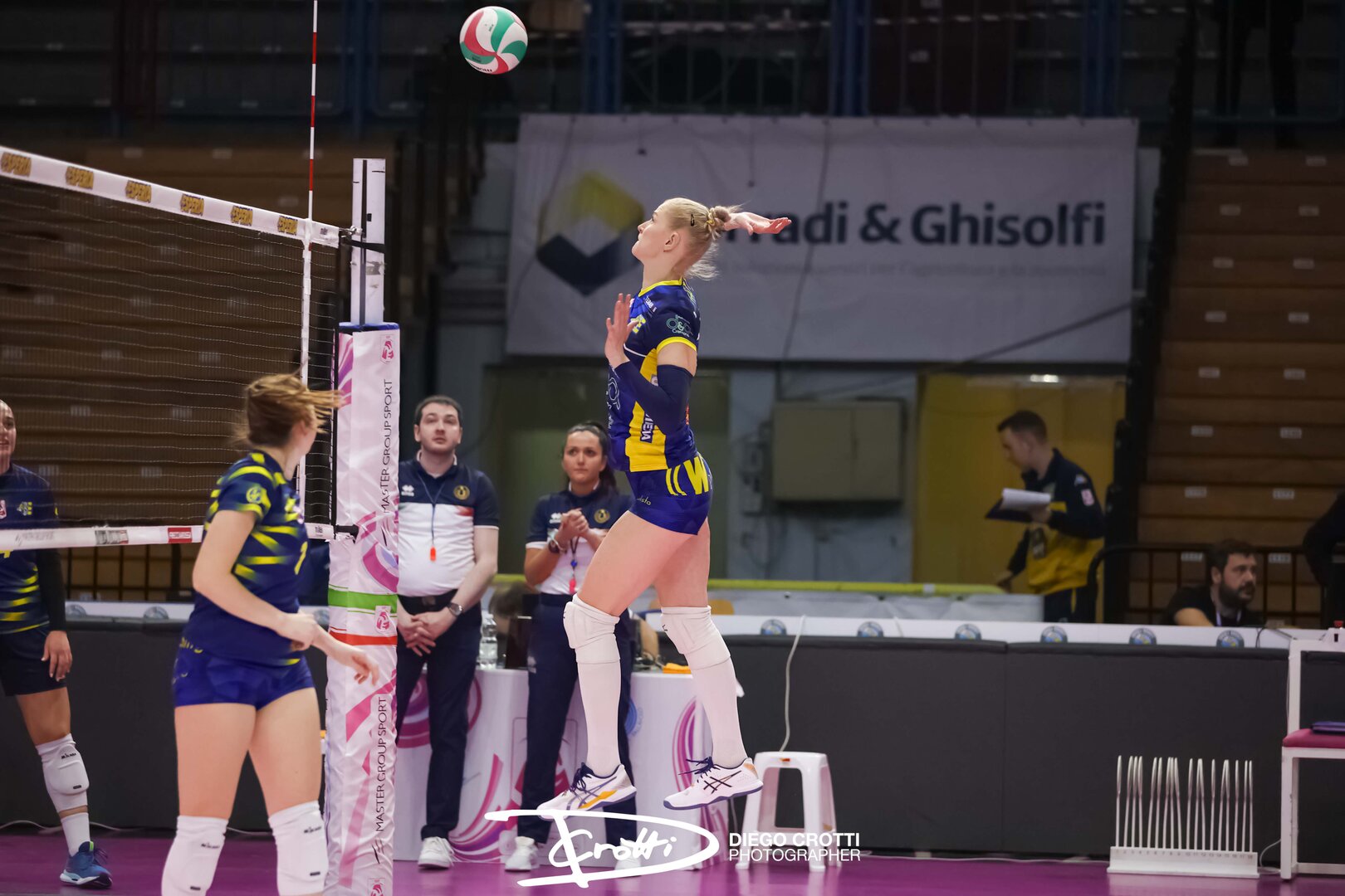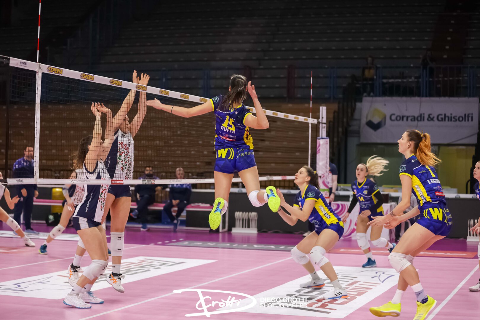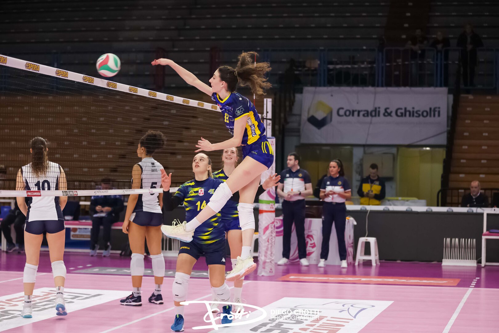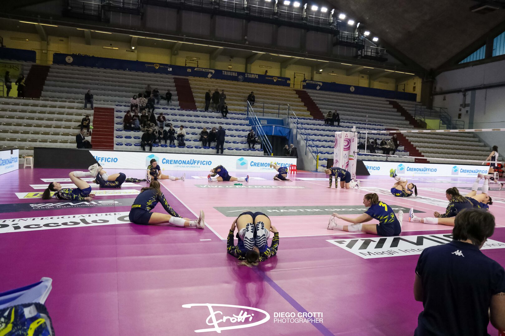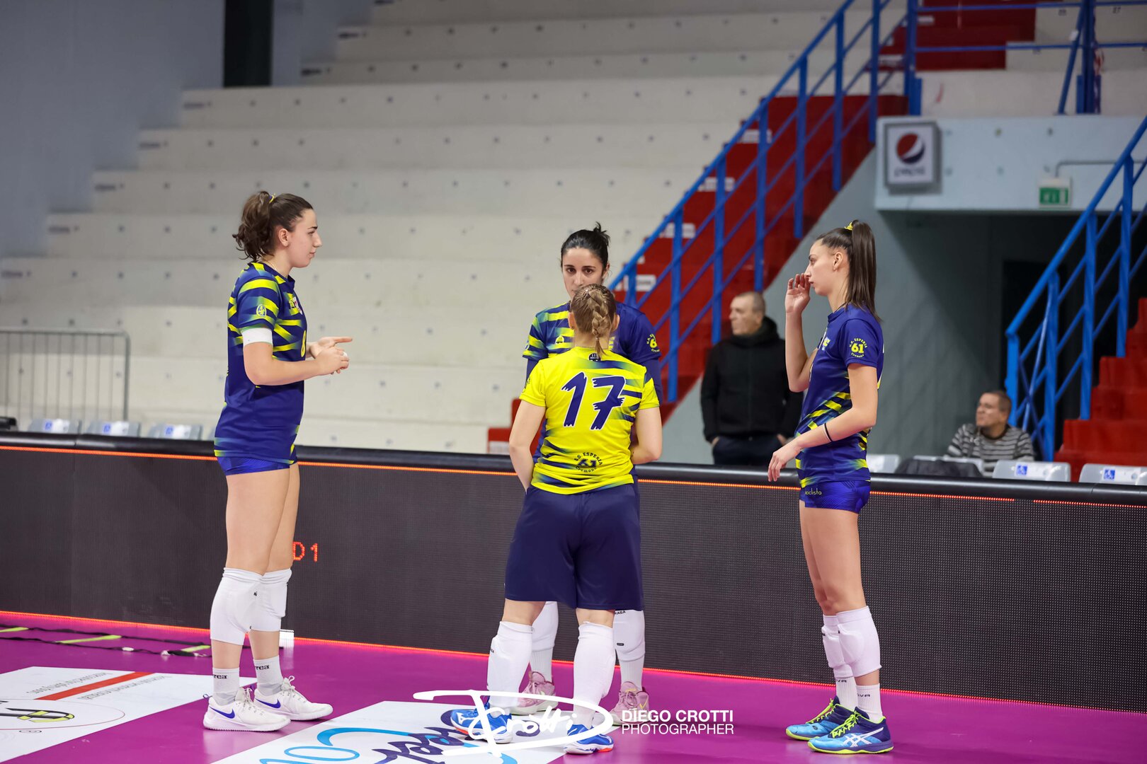 Un’ottima prova di gruppo, in cui spicca la prestazione di Simona Buffo, top scorer con 17 punti ed il 73% in attacco. Ludovica Mennecozzi, titolare della regia, varia piacevolmente il gioco: Kadi Kullerkann chiude con 13 punti, 10 per Rossini, 7 per Liis Kullerkann. Il Club Italia risulta in partita sono ad inizio gara, poi Cremona inizia ad alzare i giri del motore e la gara si chiude in tre set. Coach Fanni ruota il roster nel tentativo di prolungare la gara, senza successo. Per le azzurrine, 7 punti di Lisa Esposito, 6 per Viscioni e 5 per Acciarri. Prossimo turno per le tigri gialloblù sabato alle 17:30 al PalaRadi contro la BSC Materials Sassuolo.