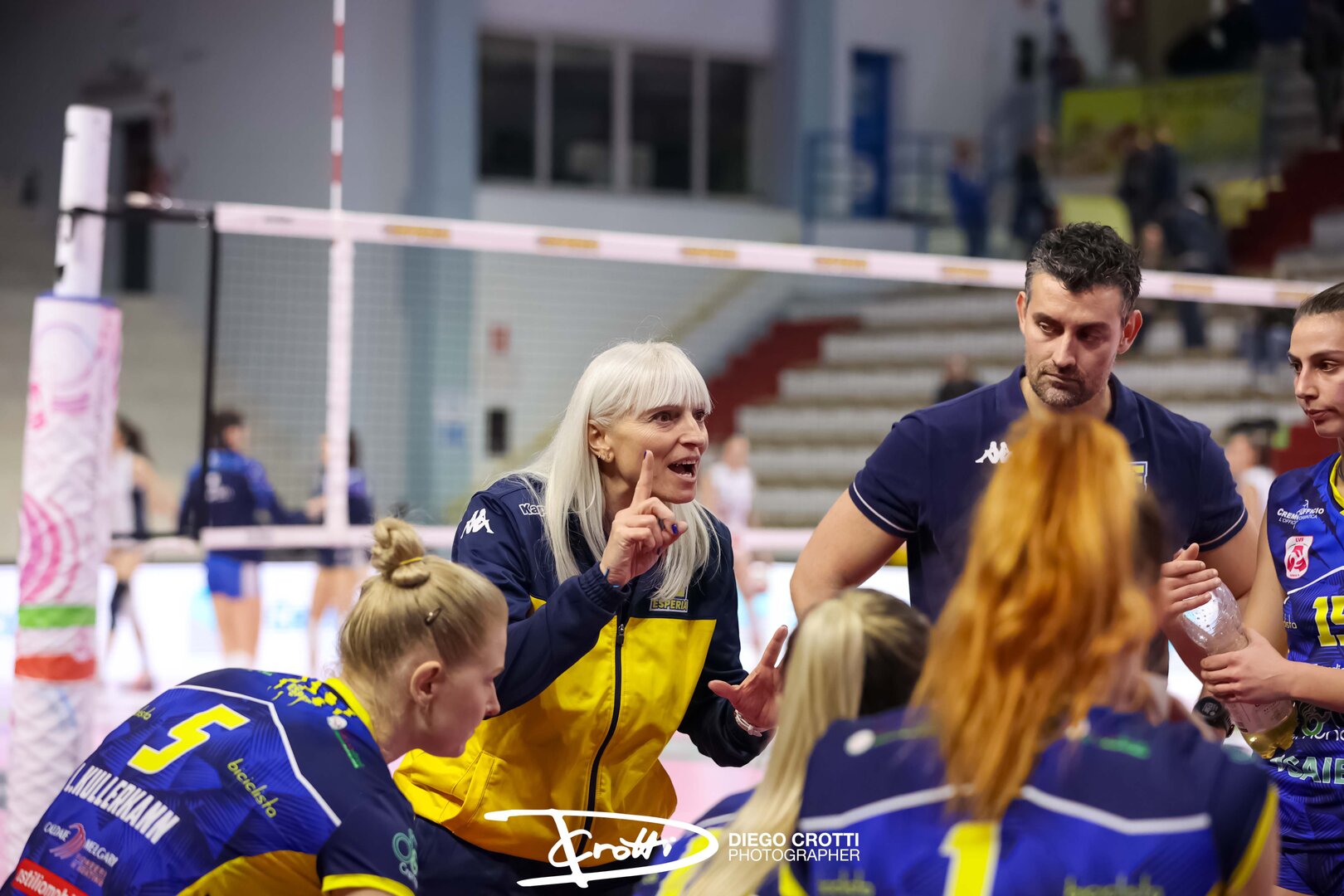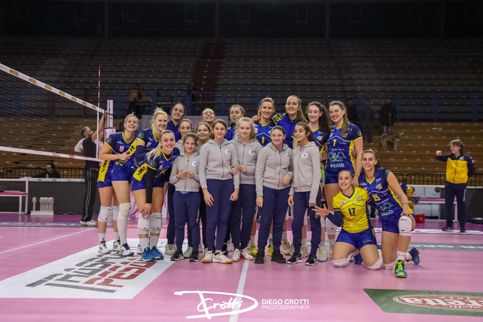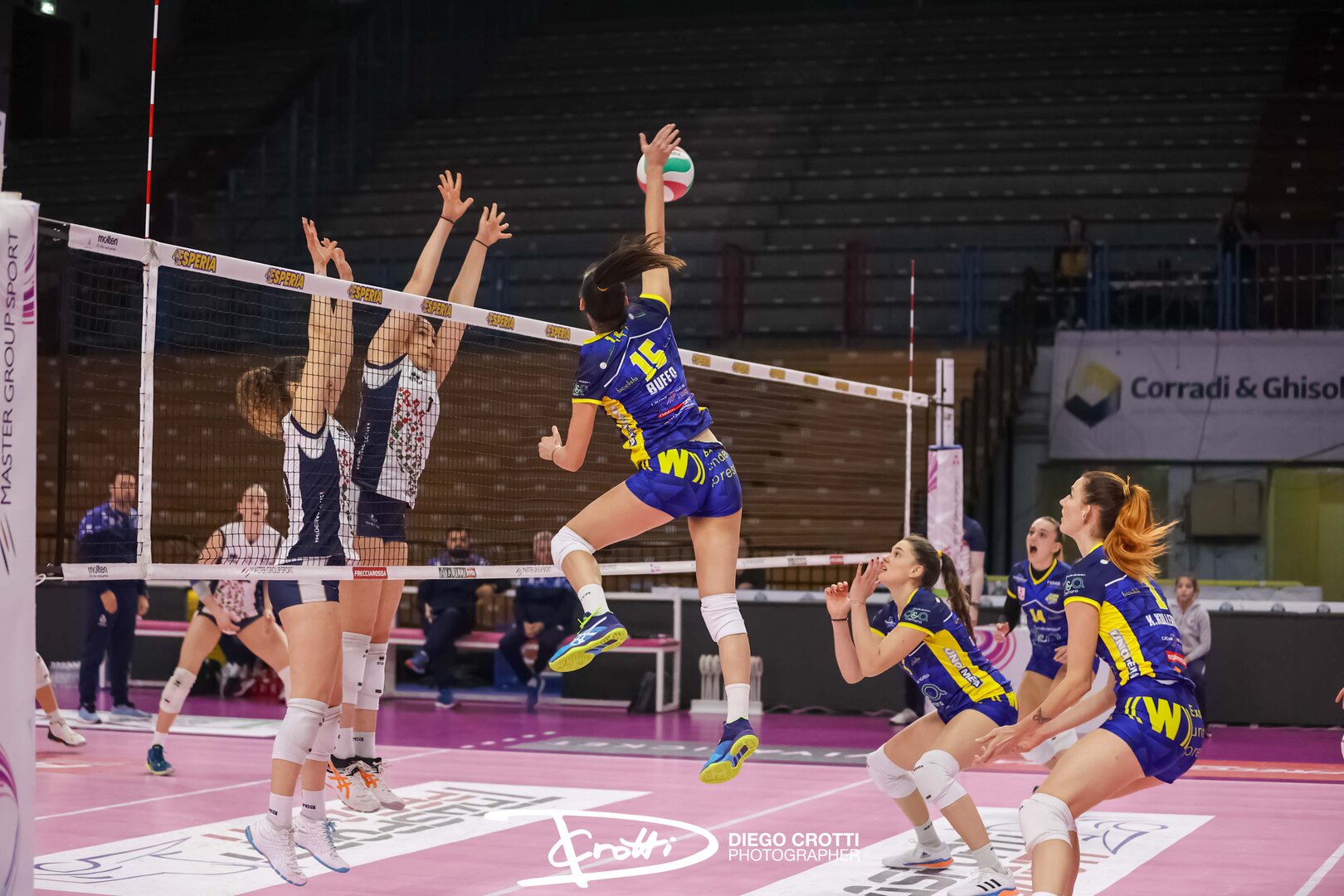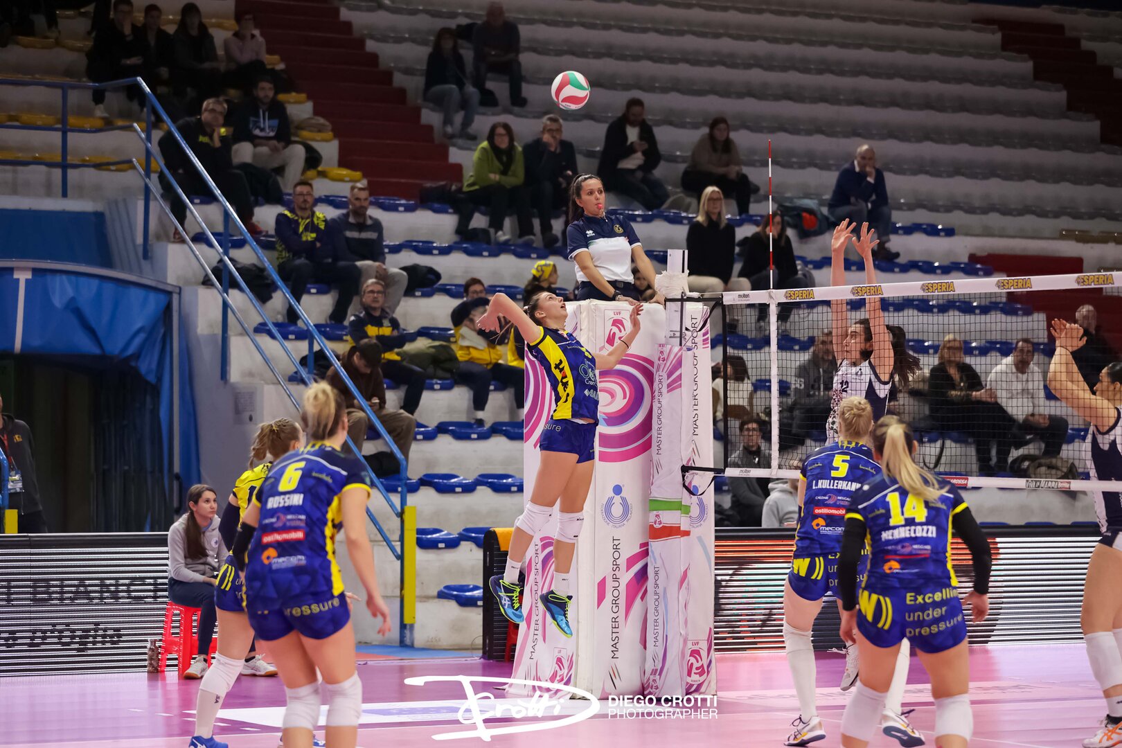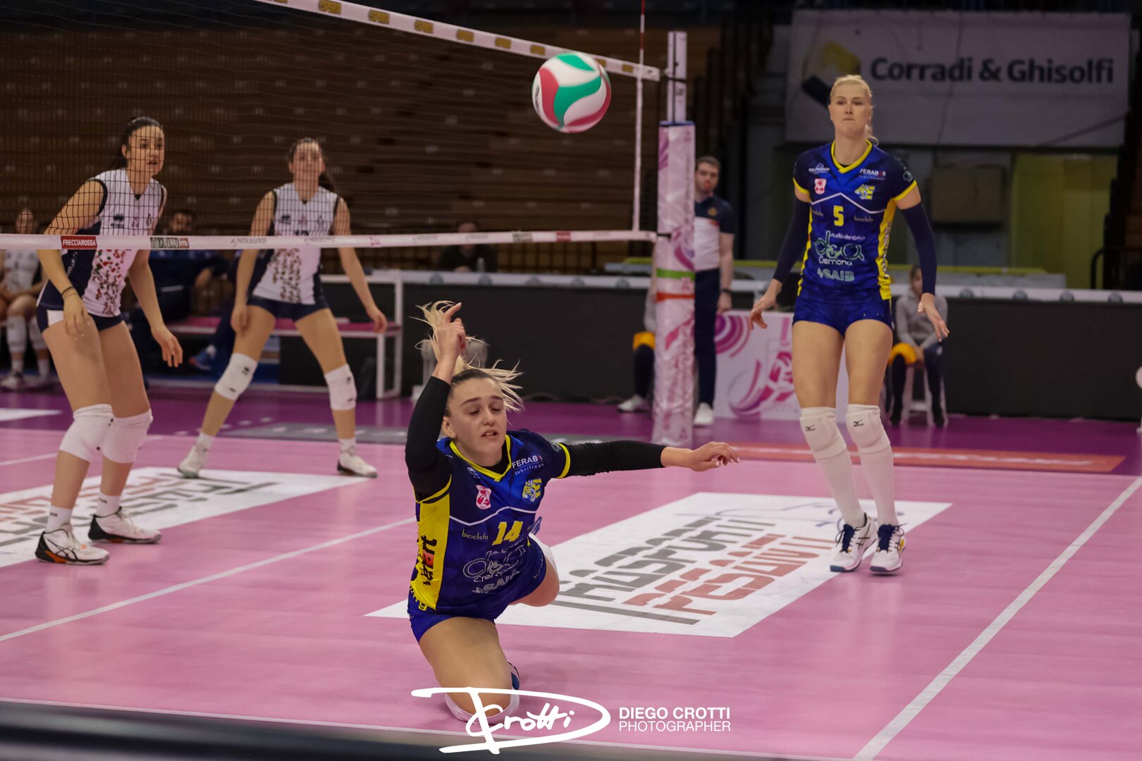 Un’ottima prova di gruppo, in cui spicca la prestazione di Simona Buffo, top scorer con 17 punti ed il 73% in attacco. Ludovica Mennecozzi, titolare della regia, varia piacevolmente il gioco: Kadi Kullerkann chiude con 13 punti, 10 per Rossini, 7 per Liis Kullerkann. Il Club Italia risulta in partita sono ad inizio gara, poi Cremona inizia ad alzare i giri del motore e la gara si chiude in tre set. Coach Fanni ruota il roster nel tentativo di prolungare la gara, senza successo. Per le azzurrine, 7 punti di Lisa Esposito, 6 per Viscioni e 5 per Acciarri. Prossimo turno per le tigri gialloblù sabato alle 17:30 al PalaRadi contro la BSC Materials Sassuolo.
