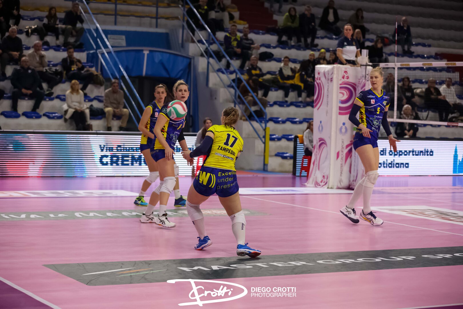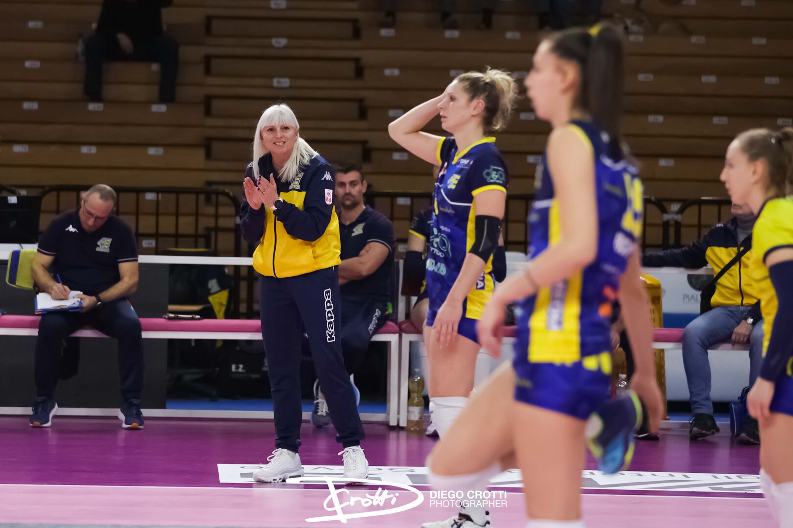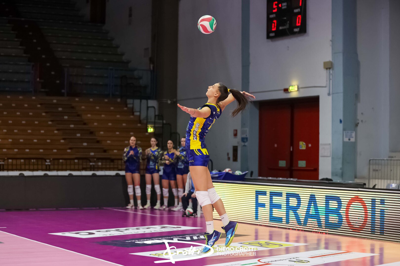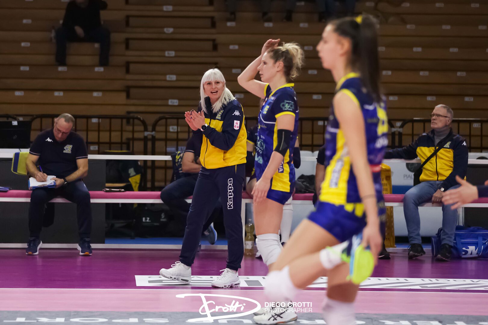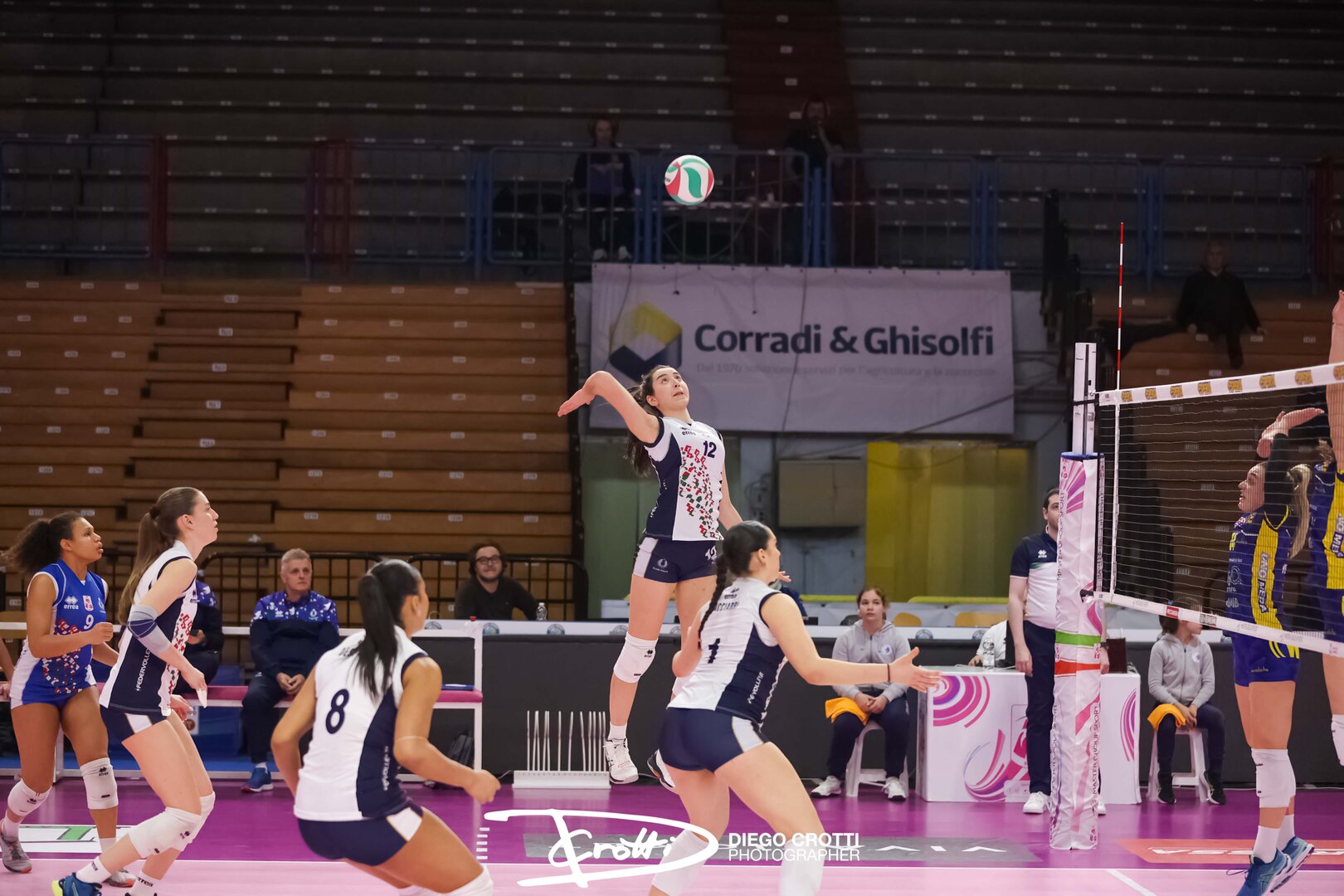 Un’ottima prova di gruppo, in cui spicca la prestazione di Simona Buffo, top scorer con 17 punti ed il 73% in attacco. Ludovica Mennecozzi, titolare della regia, varia piacevolmente il gioco: Kadi Kullerkann chiude con 13 punti, 10 per Rossini, 7 per Liis Kullerkann. Il Club Italia risulta in partita sono ad inizio gara, poi Cremona inizia ad alzare i giri del motore e la gara si chiude in tre set. Coach Fanni ruota il roster nel tentativo di prolungare la gara, senza successo. Per le azzurrine, 7 punti di Lisa Esposito, 6 per Viscioni e 5 per Acciarri. Prossimo turno per le tigri gialloblù sabato alle 17:30 al PalaRadi contro la BSC Materials Sassuolo.