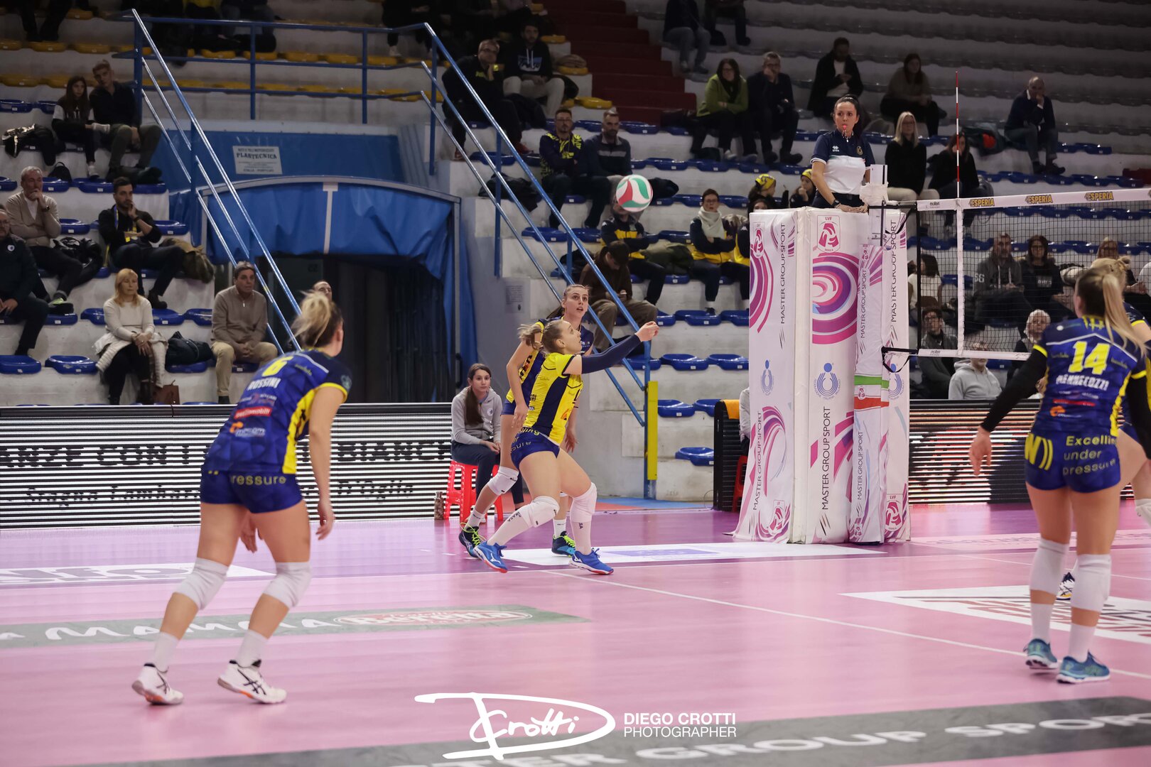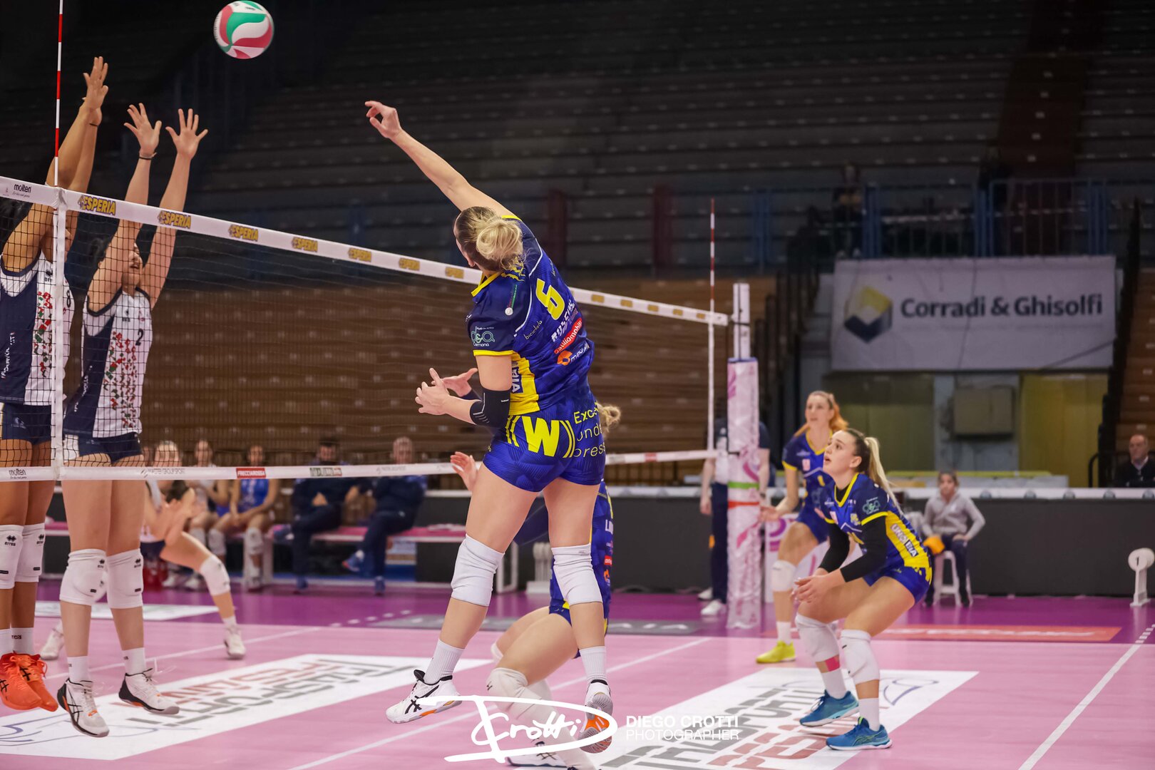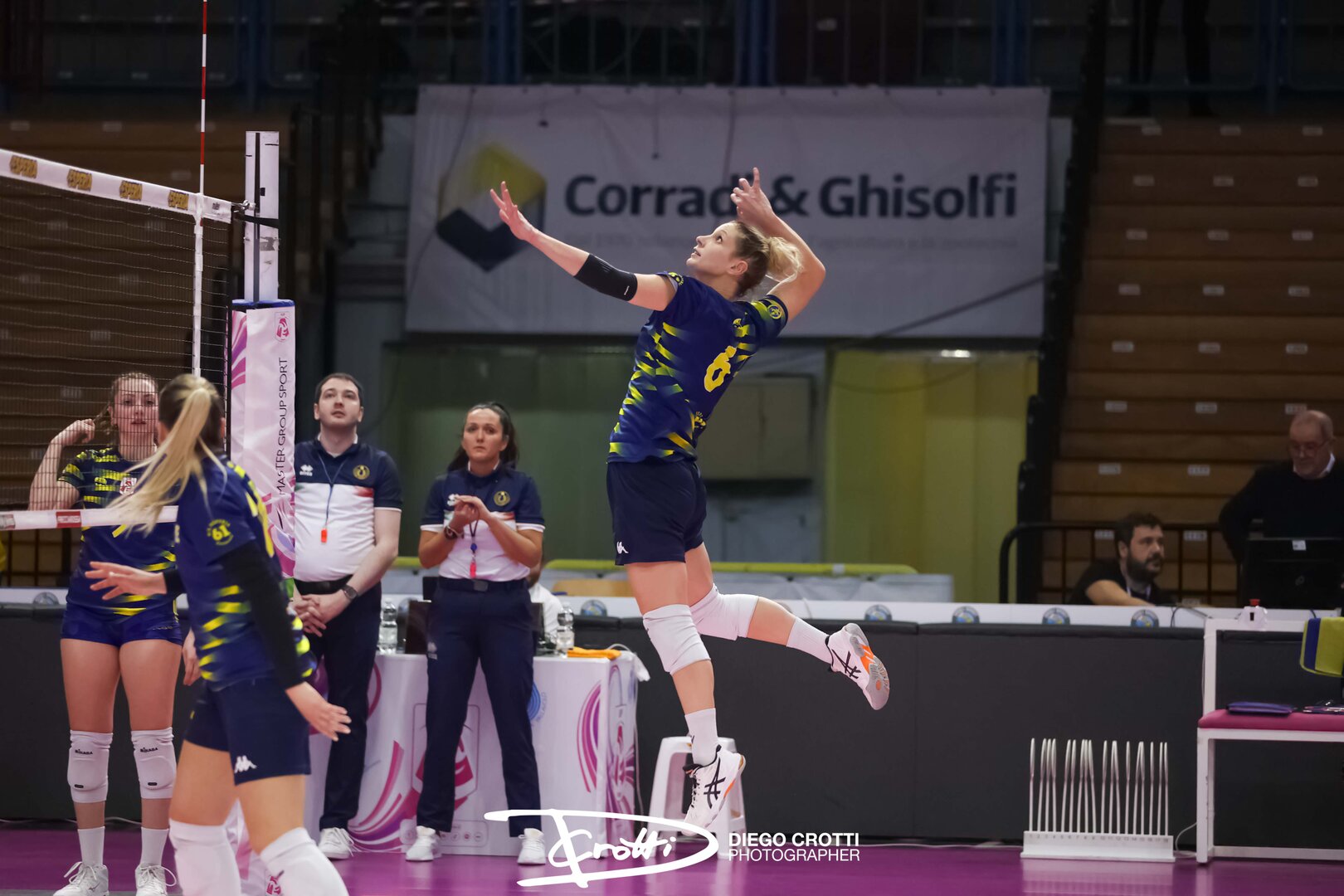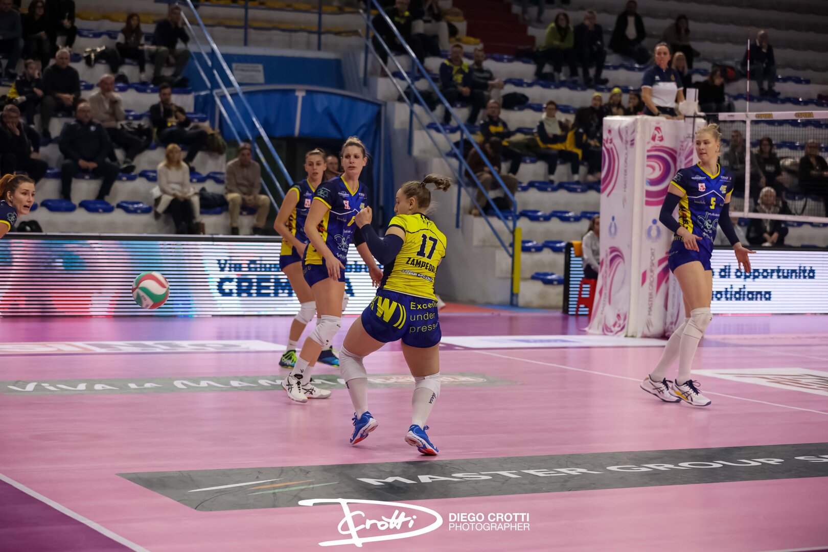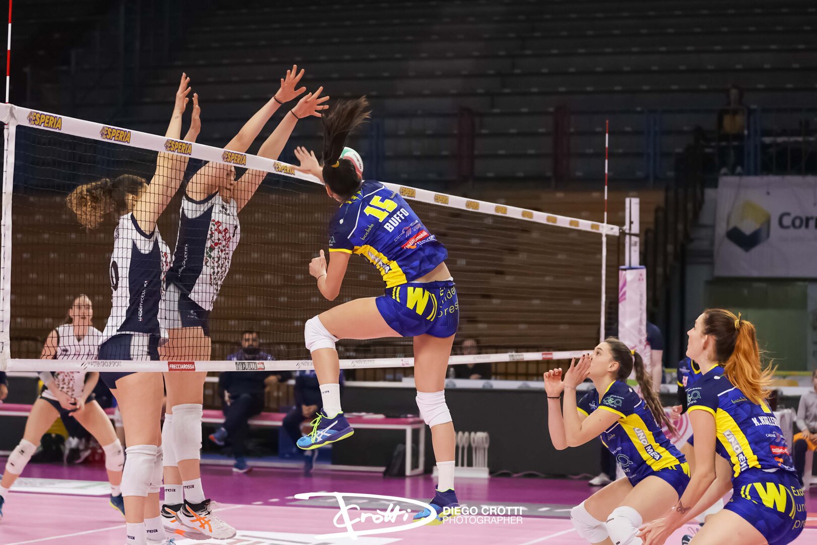 Un’ottima prova di gruppo, in cui spicca la prestazione di Simona Buffo, top scorer con 17 punti ed il 73% in attacco. Ludovica Mennecozzi, titolare della regia, varia piacevolmente il gioco: Kadi Kullerkann chiude con 13 punti, 10 per Rossini, 7 per Liis Kullerkann. Il Club Italia risulta in partita sono ad inizio gara, poi Cremona inizia ad alzare i giri del motore e la gara si chiude in tre set. Coach Fanni ruota il roster nel tentativo di prolungare la gara, senza successo. Per le azzurrine, 7 punti di Lisa Esposito, 6 per Viscioni e 5 per Acciarri. Prossimo turno per le tigri gialloblù sabato alle 17:30 al PalaRadi contro la BSC Materials Sassuolo.