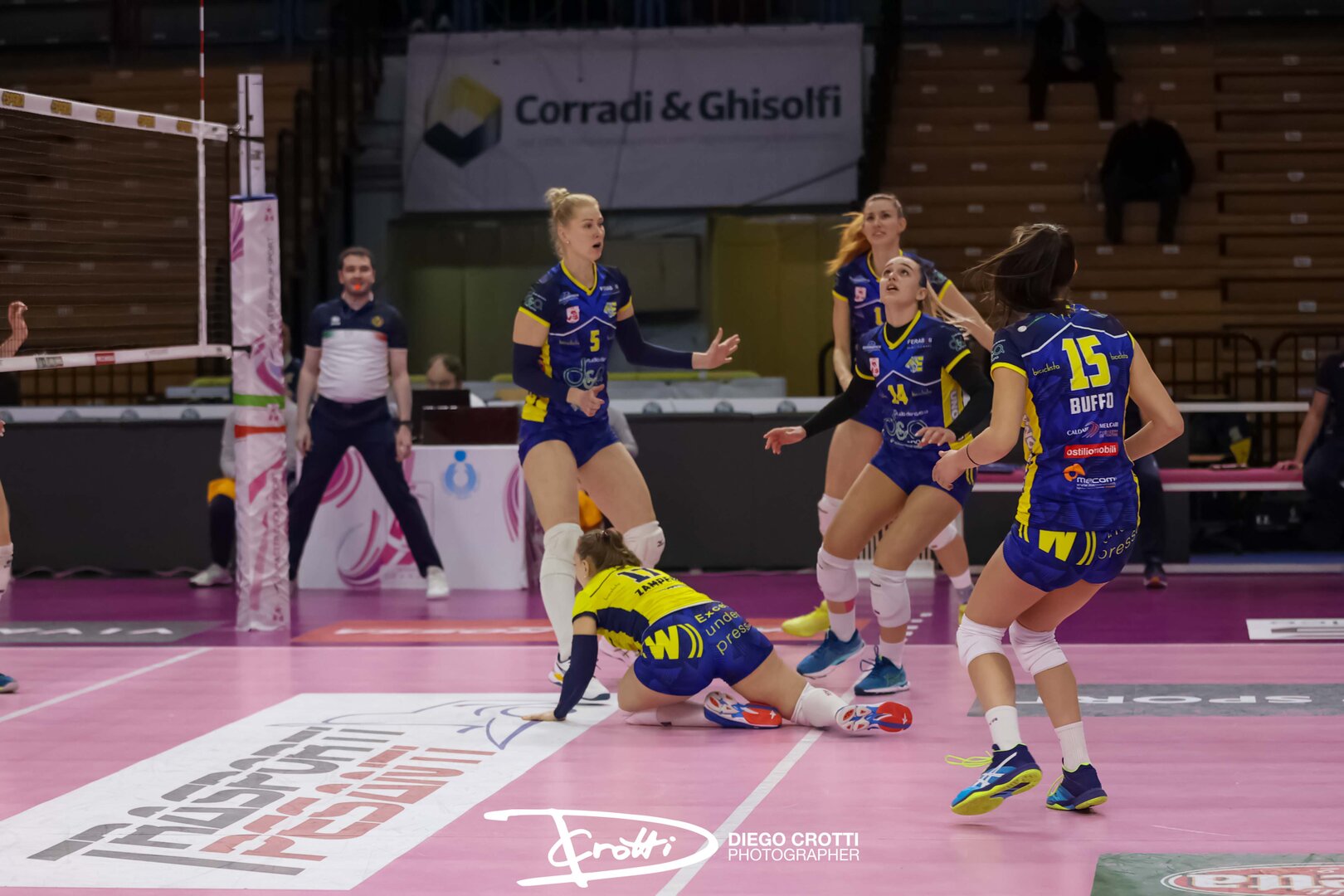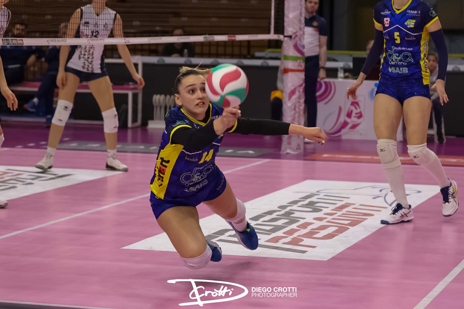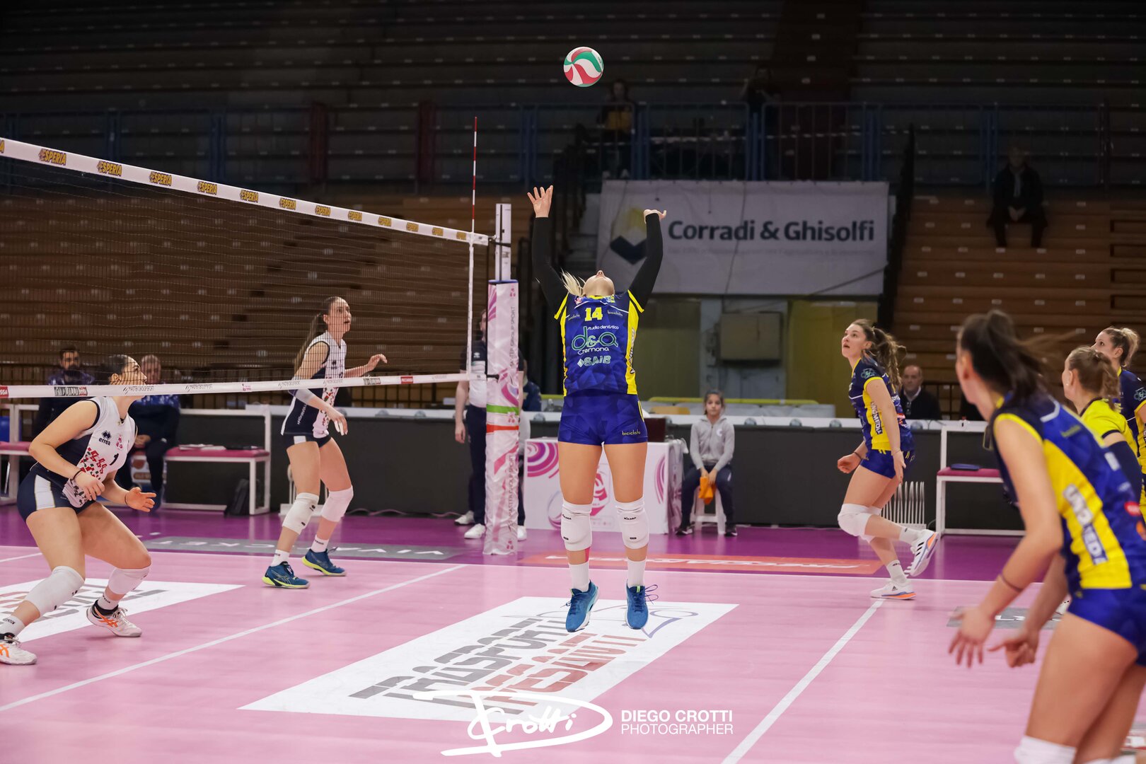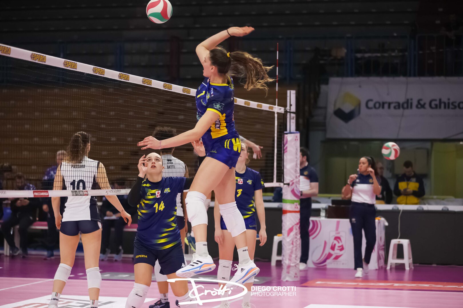 Un’ottima prova di gruppo, in cui spicca la prestazione di Simona Buffo, top scorer con 17 punti ed il 73% in attacco. Ludovica Mennecozzi, titolare della regia, varia piacevolmente il gioco: Kadi Kullerkann chiude con 13 punti, 10 per Rossini, 7 per Liis Kullerkann. Il Club Italia risulta in partita sono ad inizio gara, poi Cremona inizia ad alzare i giri del motore e la gara si chiude in tre set. Coach Fanni ruota il roster nel tentativo di prolungare la gara, senza successo. Per le azzurrine, 7 punti di Lisa Esposito, 6 per Viscioni e 5 per Acciarri. Prossimo turno per le tigri gialloblù sabato alle 17:30 al PalaRadi contro la BSC Materials Sassuolo.