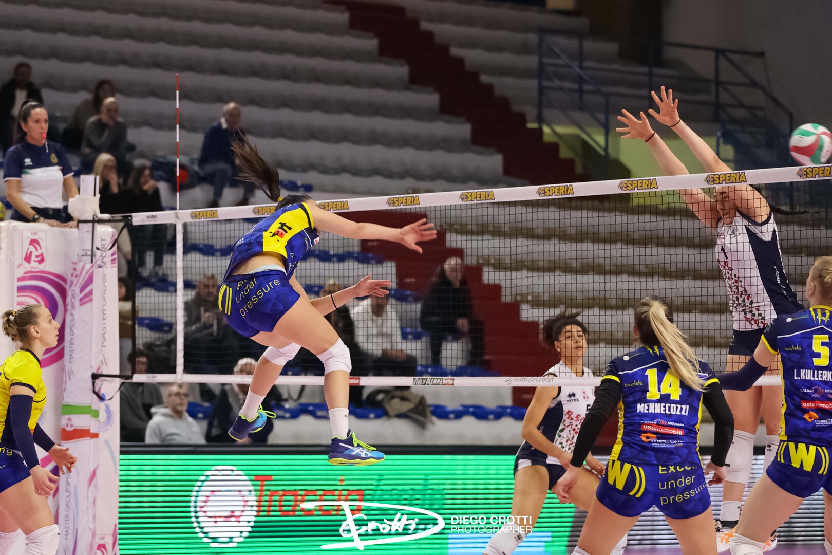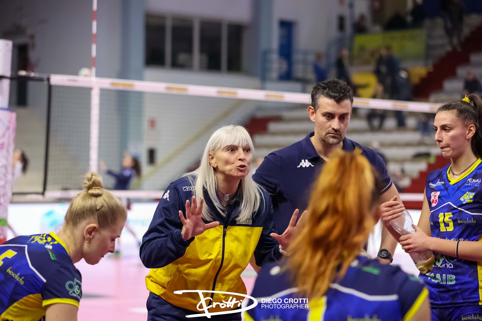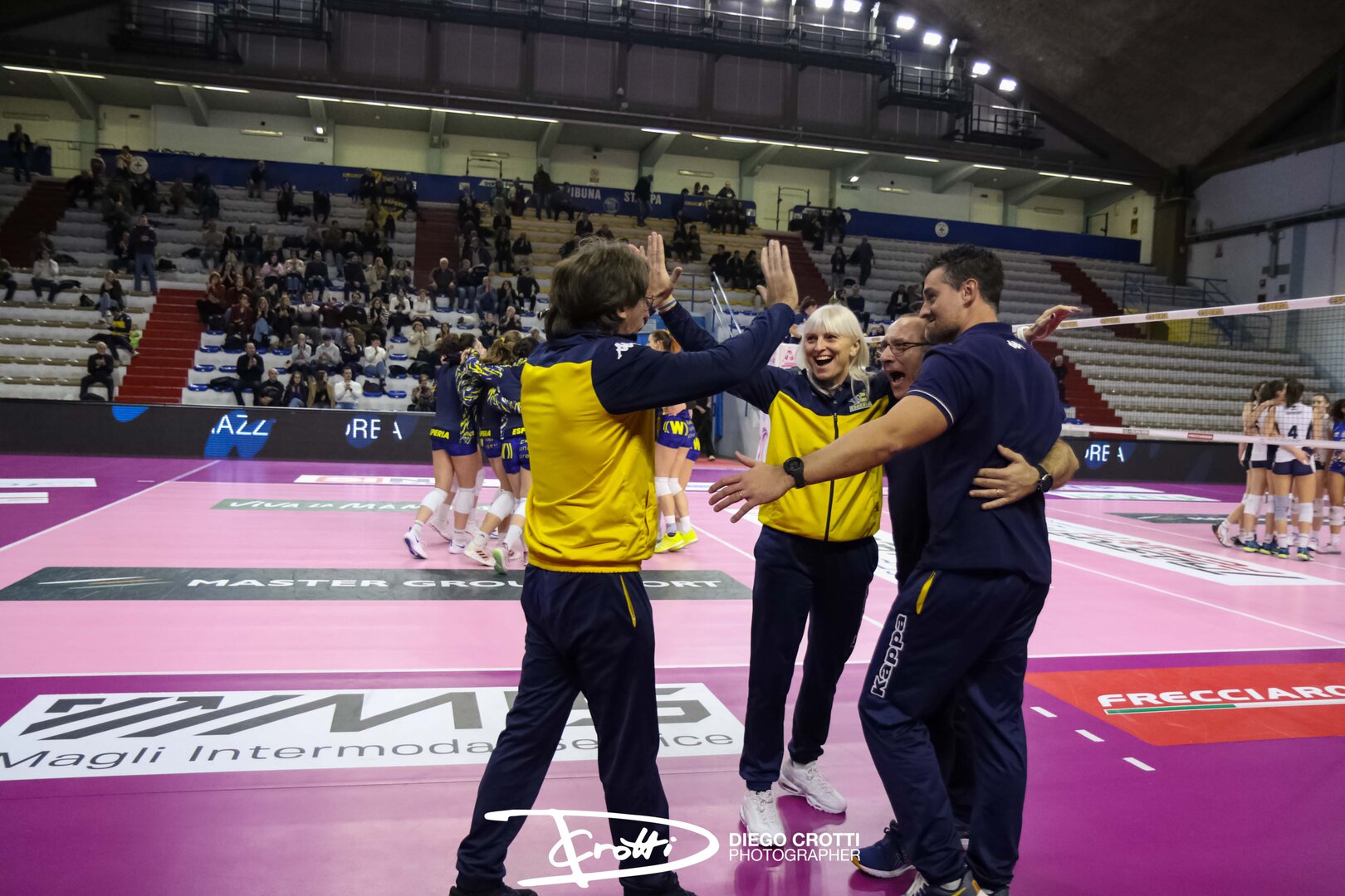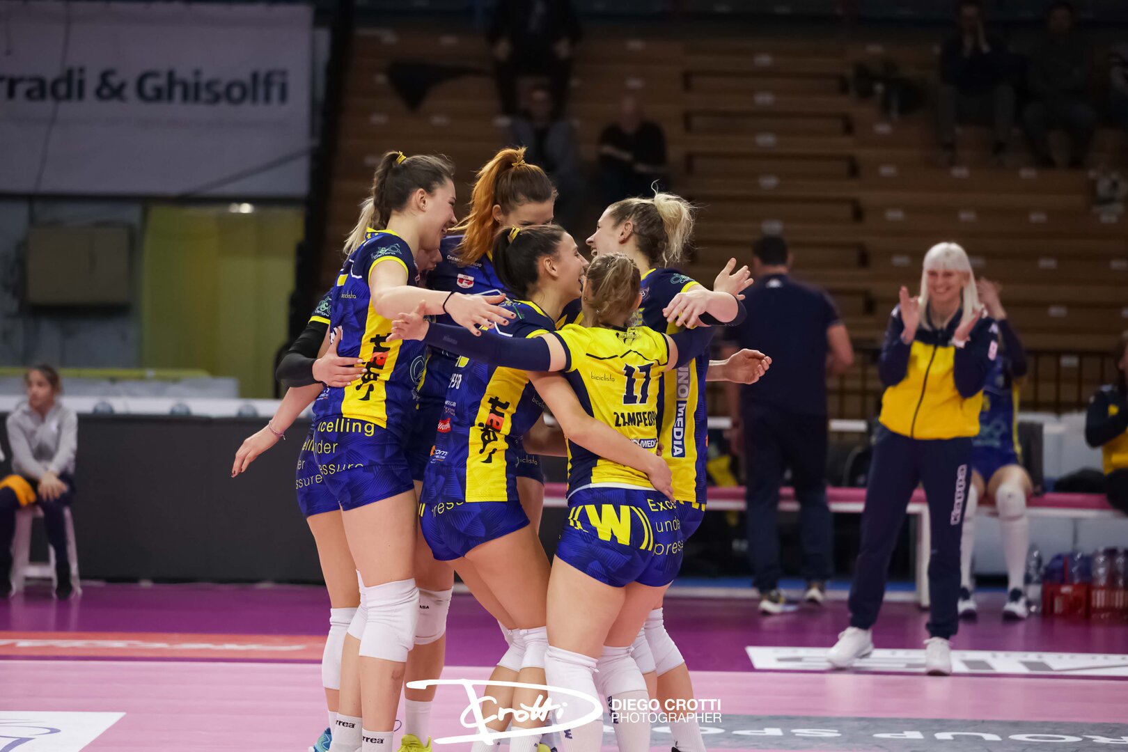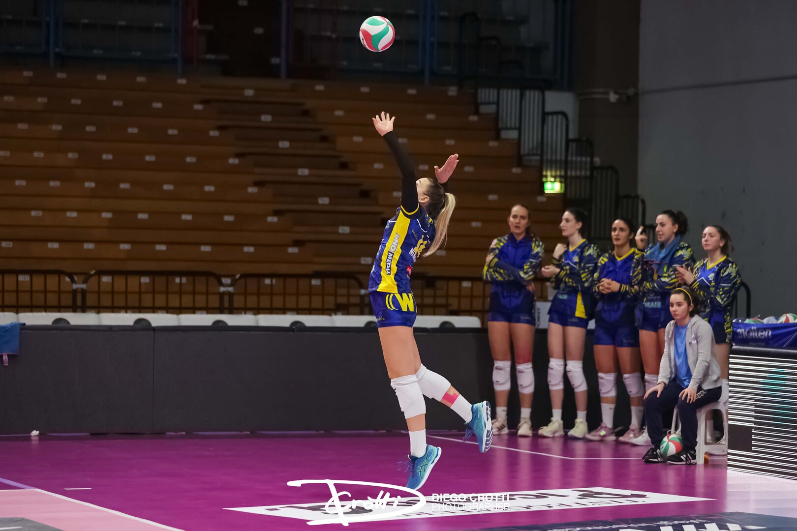 Un’ottima prova di gruppo, in cui spicca la prestazione di Simona Buffo, top scorer con 17 punti ed il 73% in attacco. Ludovica Mennecozzi, titolare della regia, varia piacevolmente il gioco: Kadi Kullerkann chiude con 13 punti, 10 per Rossini, 7 per Liis Kullerkann. Il Club Italia risulta in partita sono ad inizio gara, poi Cremona inizia ad alzare i giri del motore e la gara si chiude in tre set. Coach Fanni ruota il roster nel tentativo di prolungare la gara, senza successo. Per le azzurrine, 7 punti di Lisa Esposito, 6 per Viscioni e 5 per Acciarri. Prossimo turno per le tigri gialloblù sabato alle 17:30 al PalaRadi contro la BSC Materials Sassuolo.
