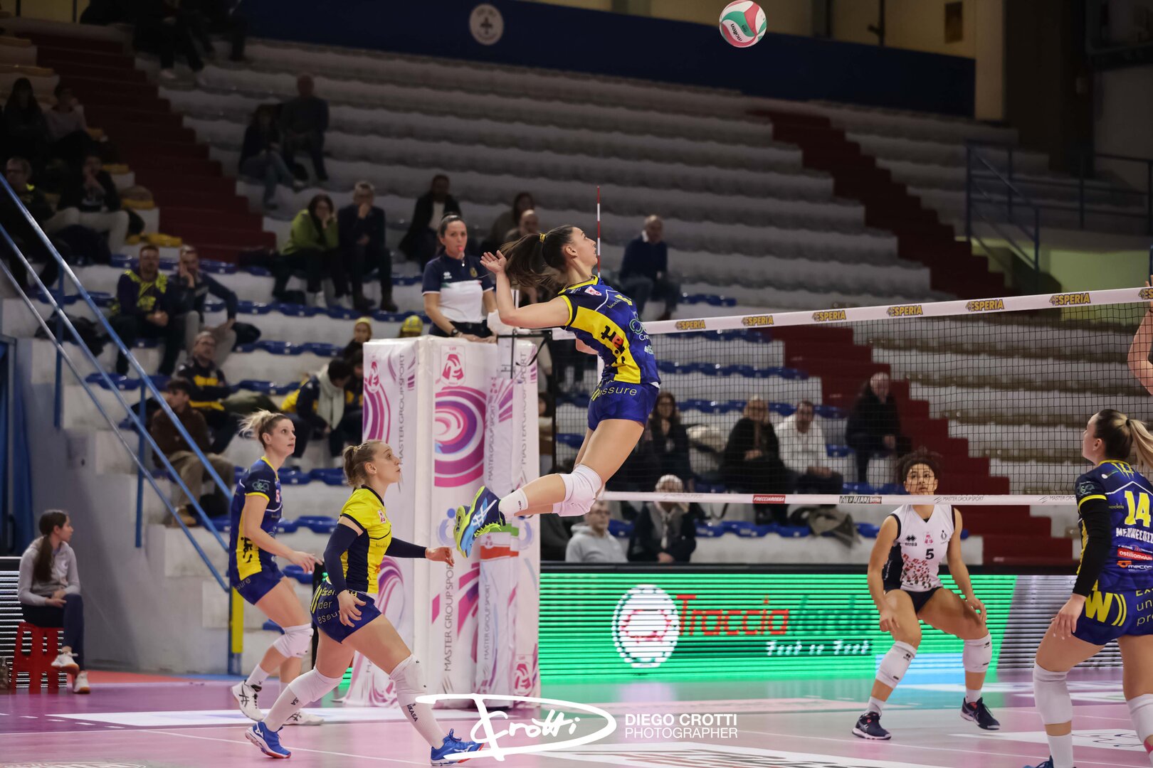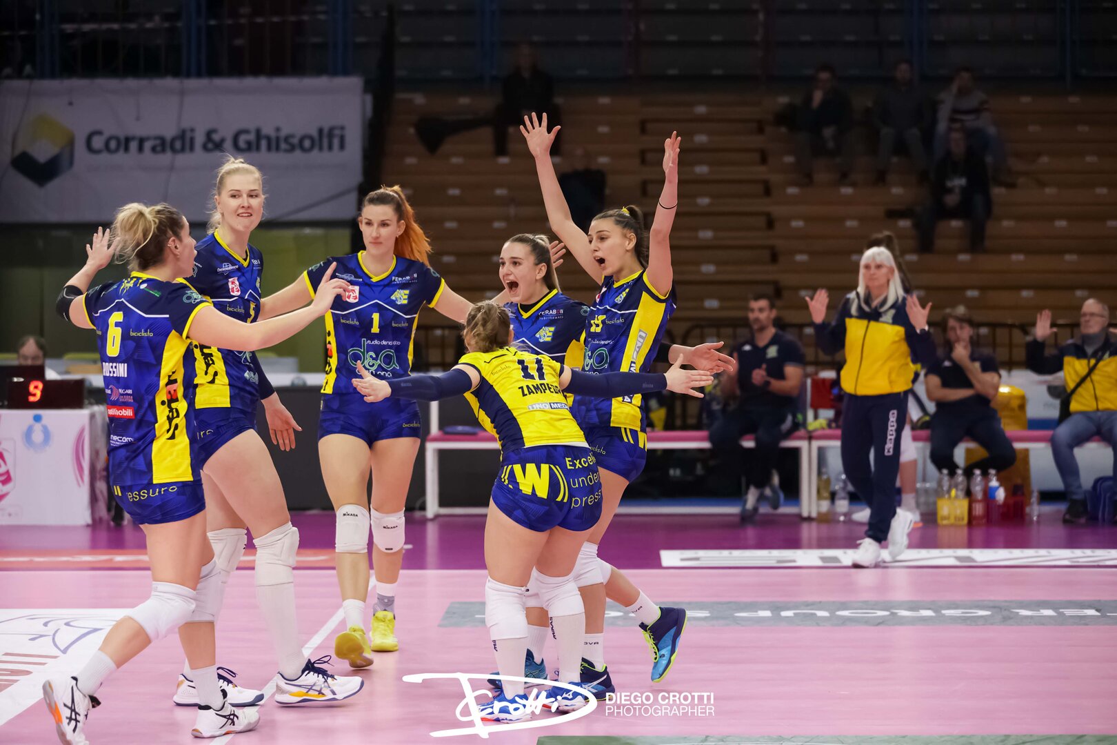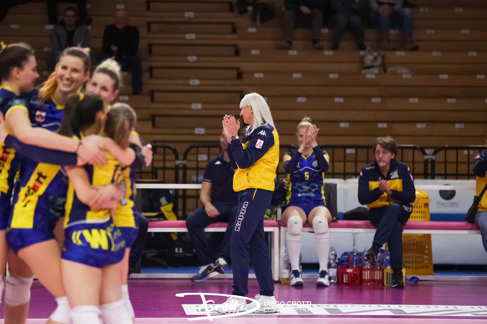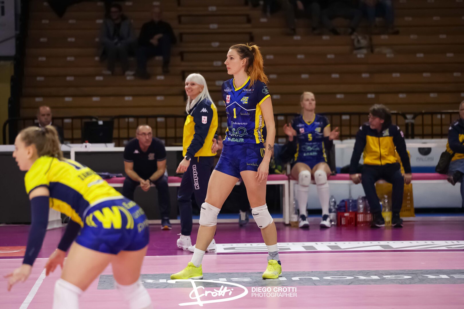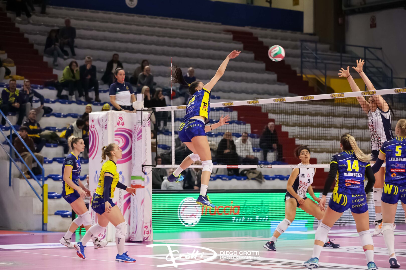 Un’ottima prova di gruppo, in cui spicca la prestazione di Simona Buffo, top scorer con 17 punti ed il 73% in attacco. Ludovica Mennecozzi, titolare della regia, varia piacevolmente il gioco: Kadi Kullerkann chiude con 13 punti, 10 per Rossini, 7 per Liis Kullerkann. Il Club Italia risulta in partita sono ad inizio gara, poi Cremona inizia ad alzare i giri del motore e la gara si chiude in tre set. Coach Fanni ruota il roster nel tentativo di prolungare la gara, senza successo. Per le azzurrine, 7 punti di Lisa Esposito, 6 per Viscioni e 5 per Acciarri. Prossimo turno per le tigri gialloblù sabato alle 17:30 al PalaRadi contro la BSC Materials Sassuolo.