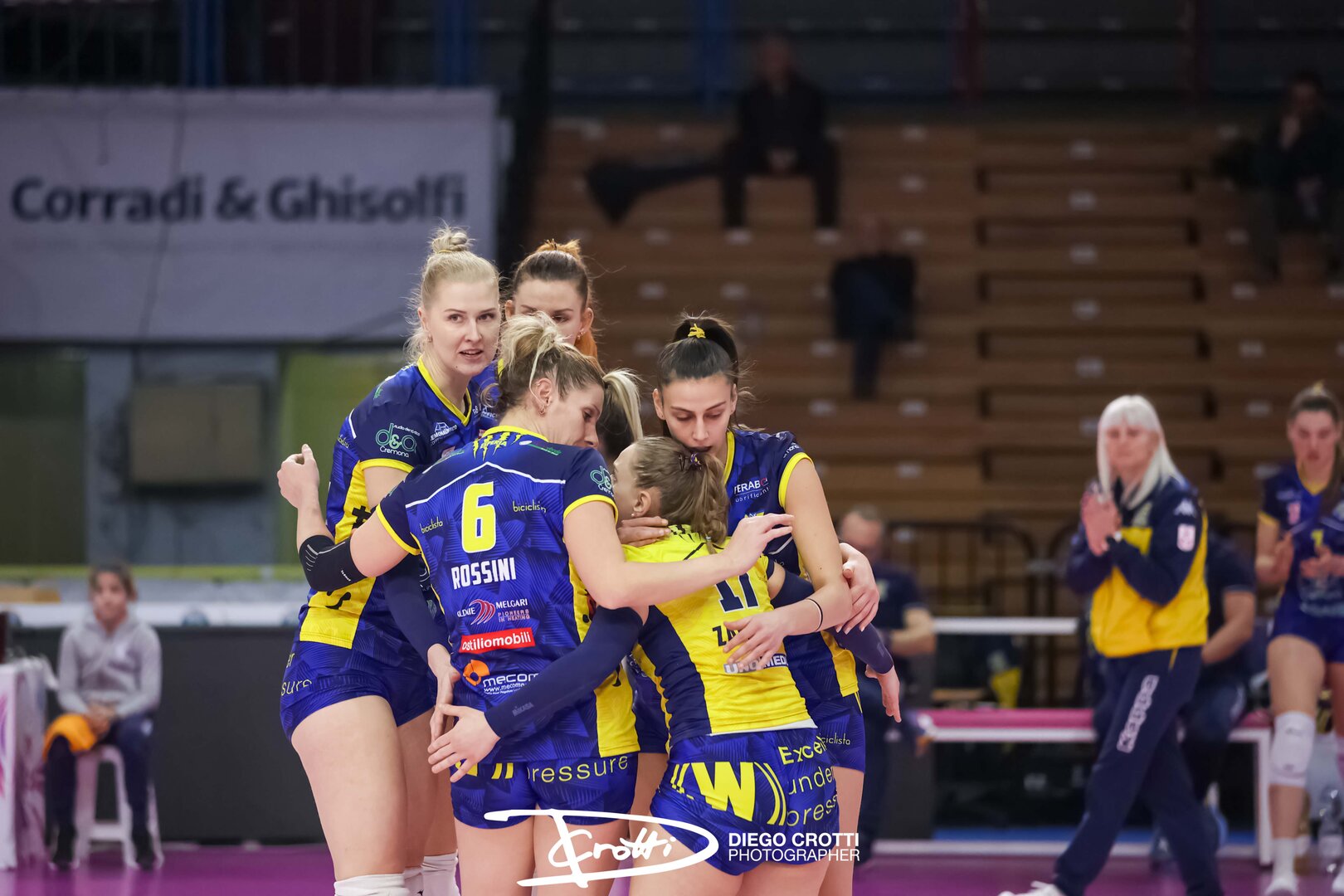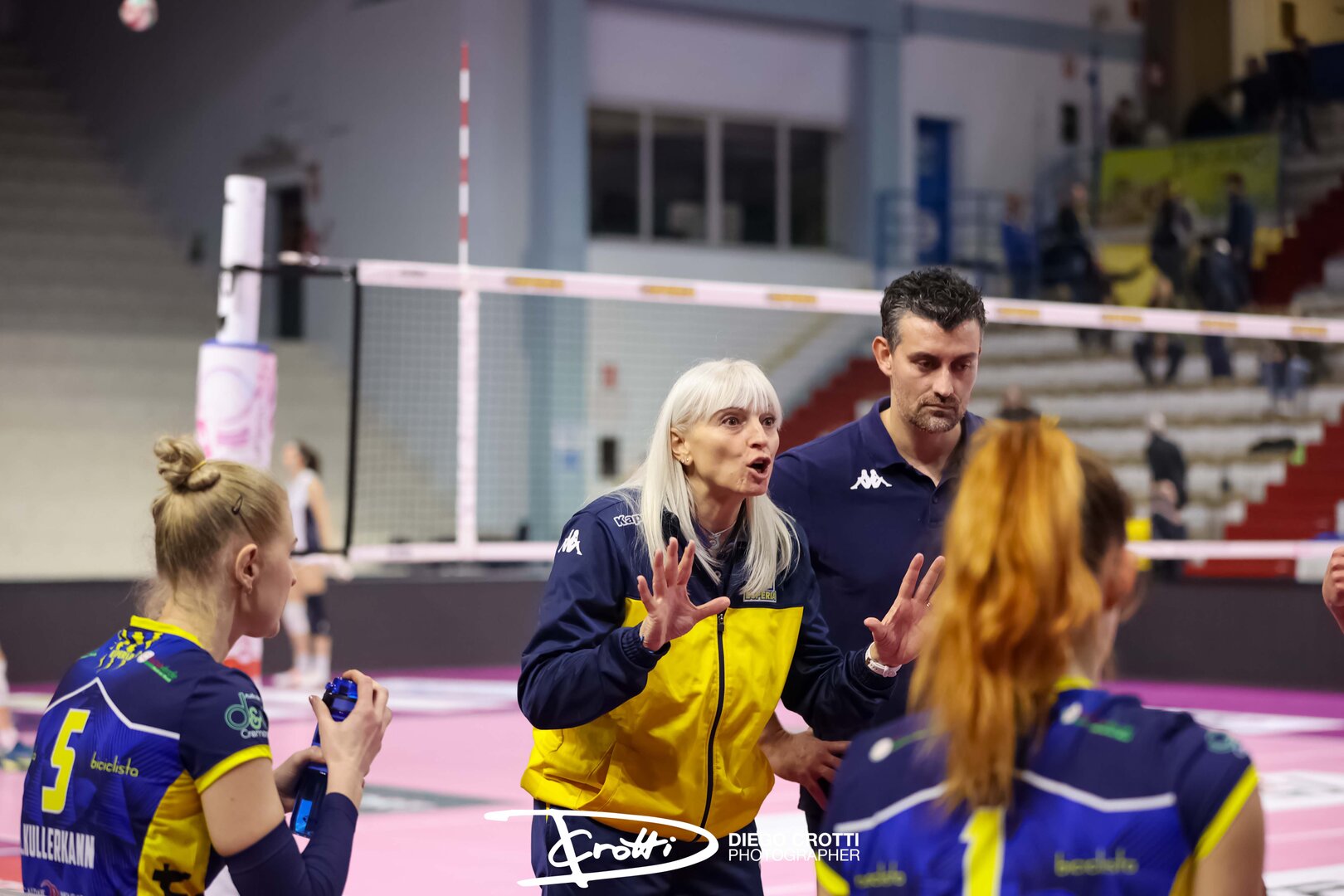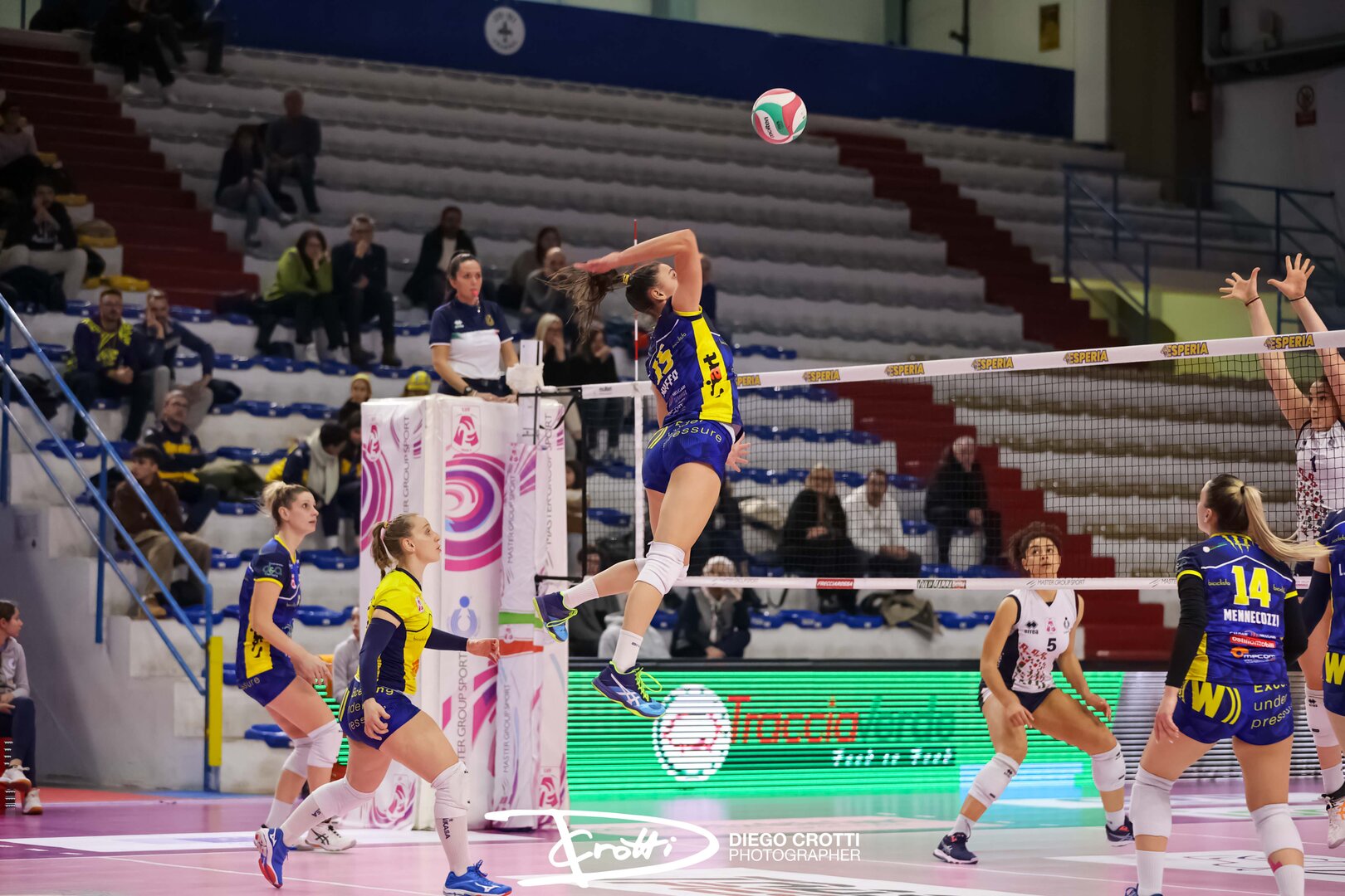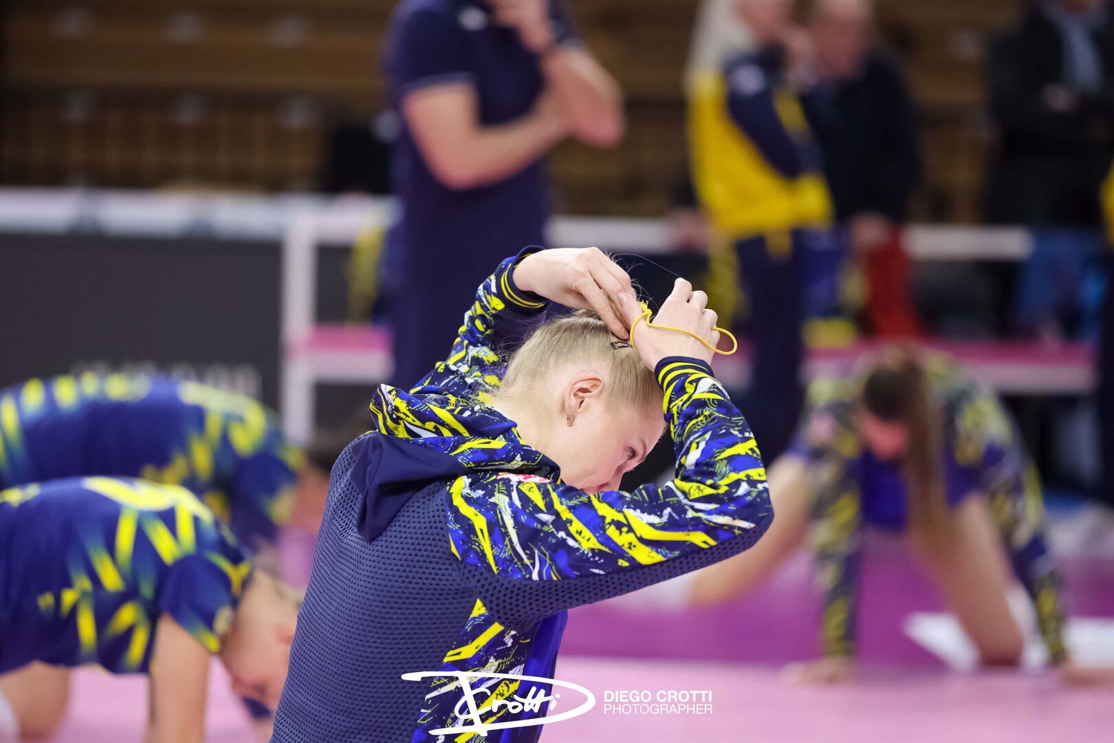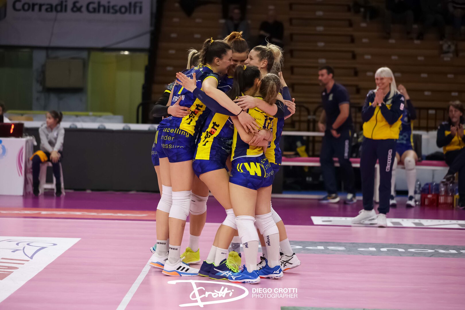 Un’ottima prova di gruppo, in cui spicca la prestazione di Simona Buffo, top scorer con 17 punti ed il 73% in attacco. Ludovica Mennecozzi, titolare della regia, varia piacevolmente il gioco: Kadi Kullerkann chiude con 13 punti, 10 per Rossini, 7 per Liis Kullerkann. Il Club Italia risulta in partita sono ad inizio gara, poi Cremona inizia ad alzare i giri del motore e la gara si chiude in tre set. Coach Fanni ruota il roster nel tentativo di prolungare la gara, senza successo. Per le azzurrine, 7 punti di Lisa Esposito, 6 per Viscioni e 5 per Acciarri. Prossimo turno per le tigri gialloblù sabato alle 17:30 al PalaRadi contro la BSC Materials Sassuolo.