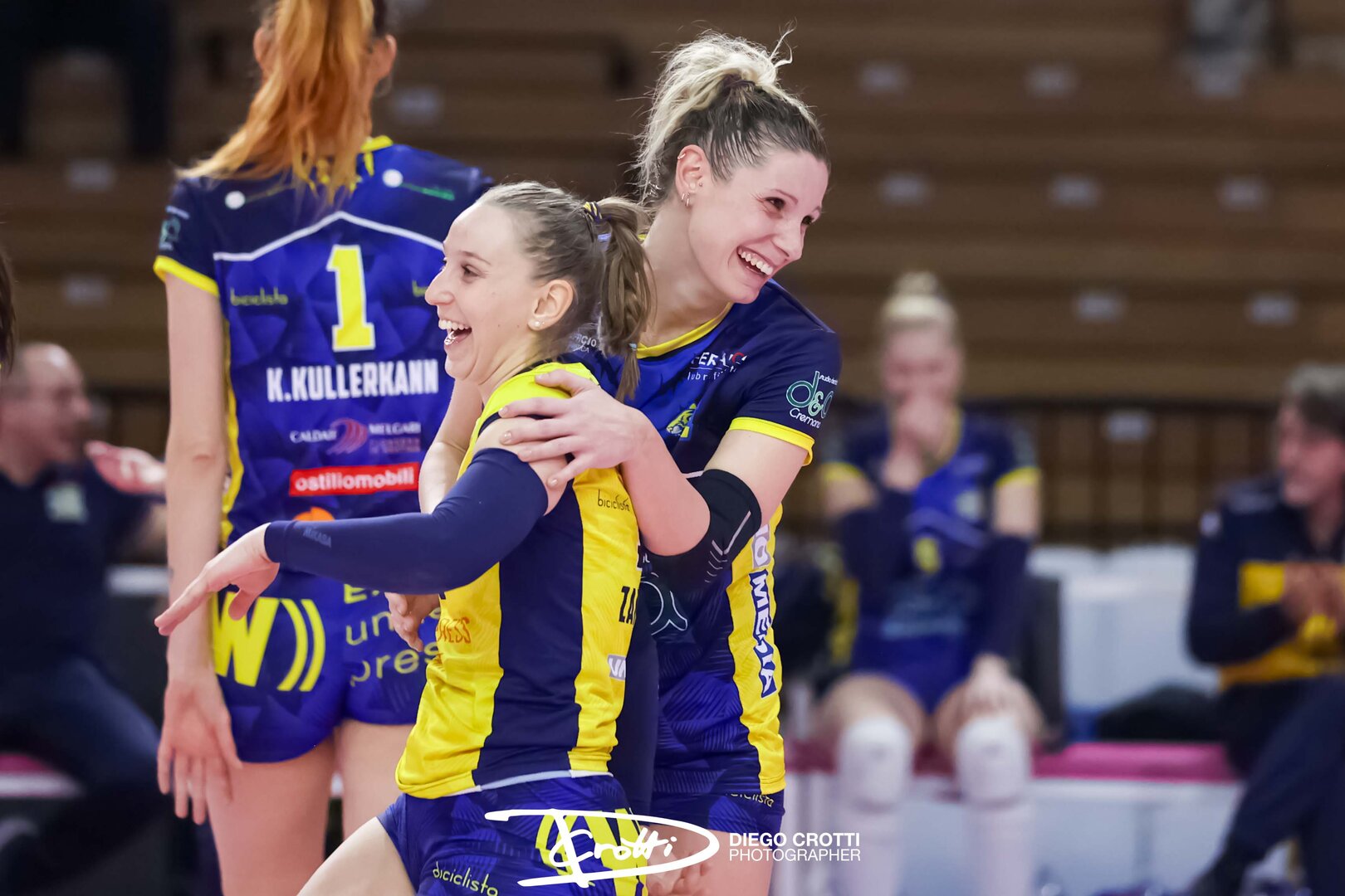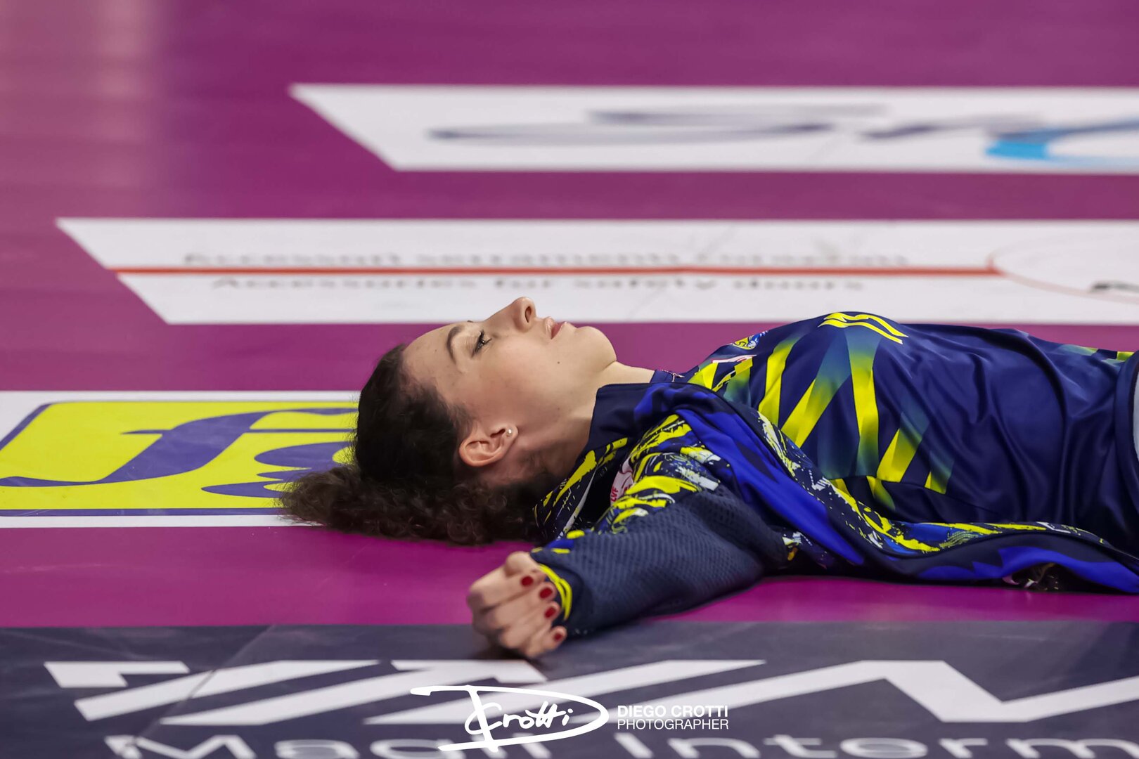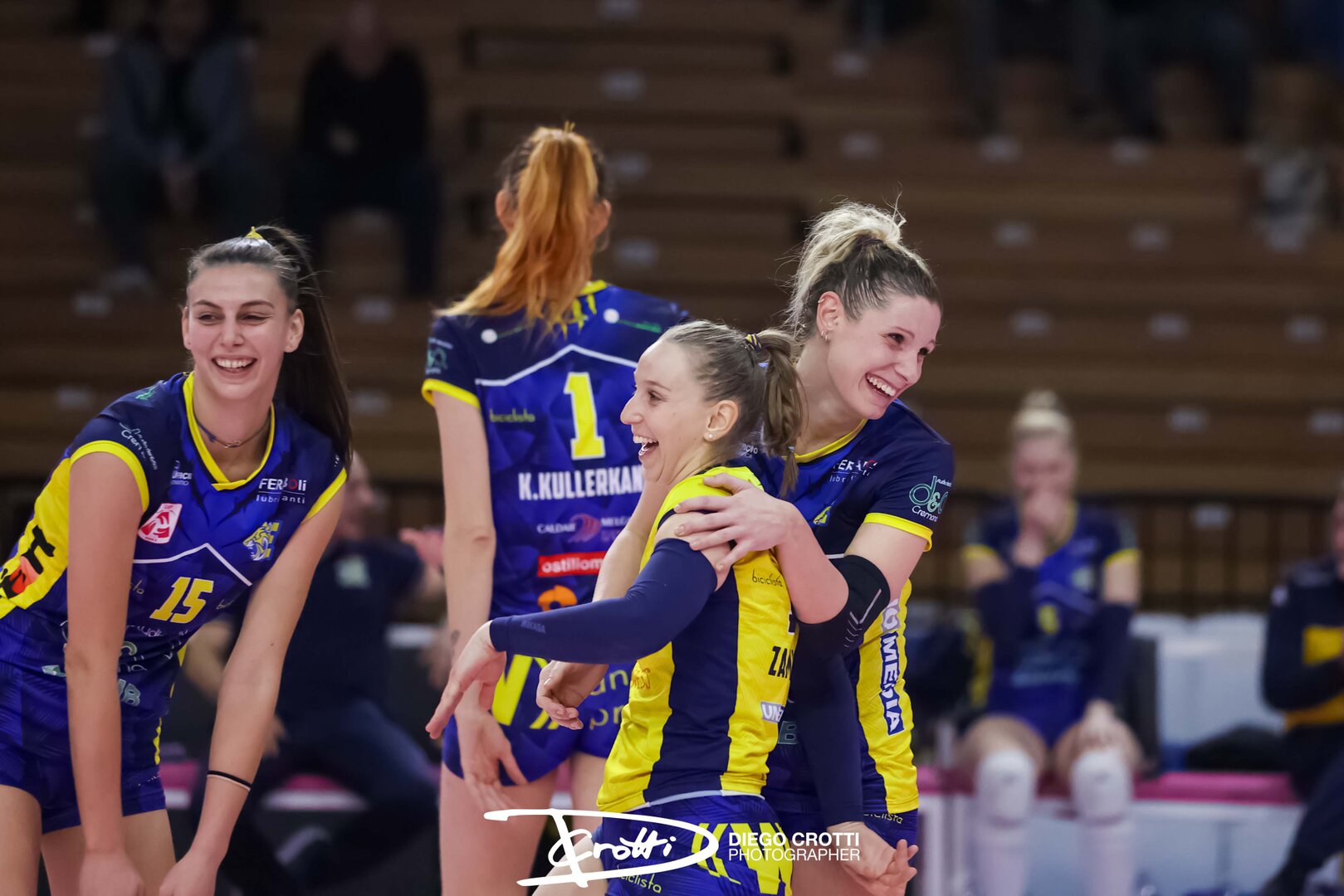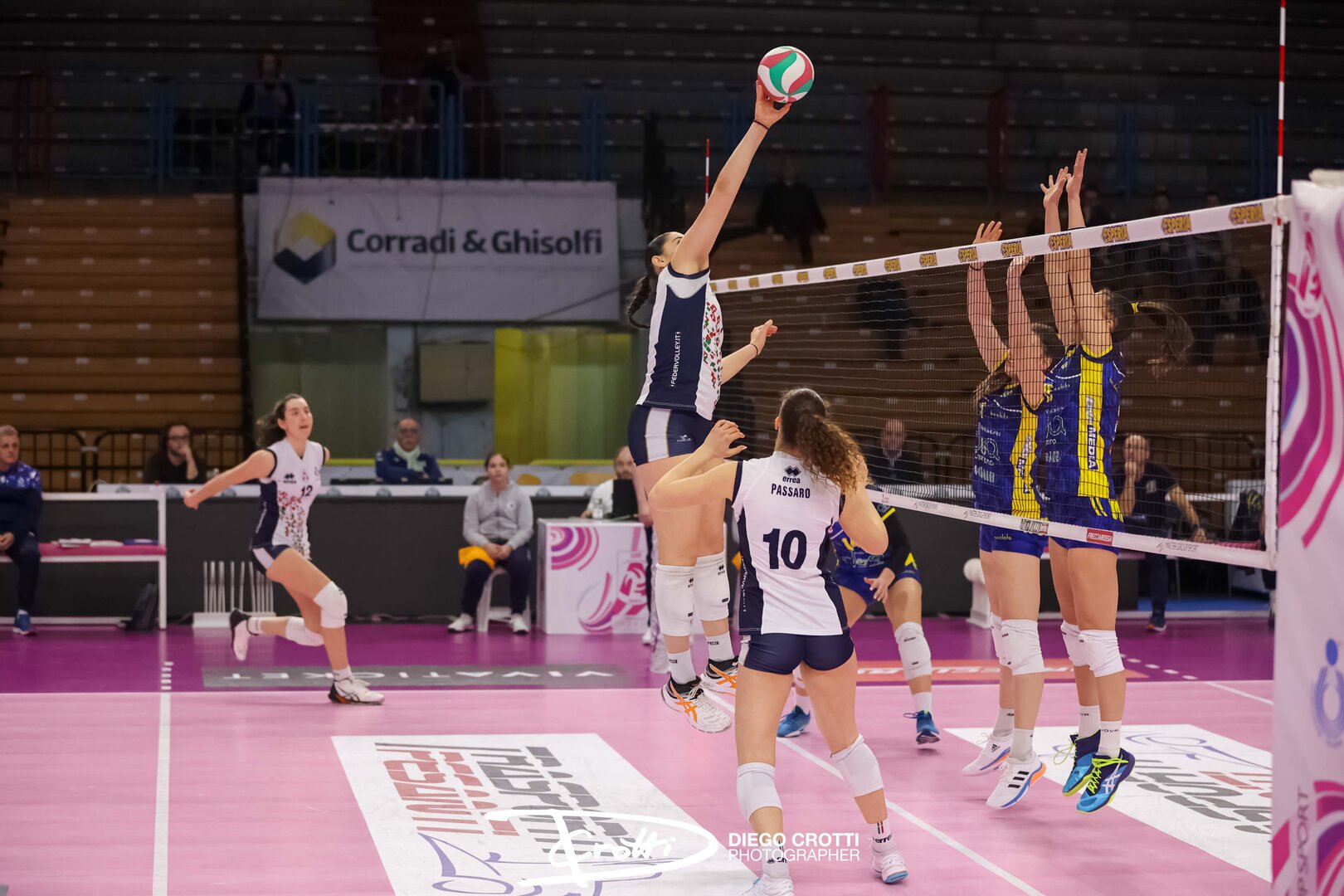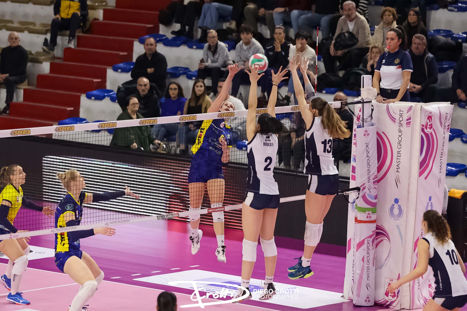 Un’ottima prova di gruppo, in cui spicca la prestazione di Simona Buffo, top scorer con 17 punti ed il 73% in attacco. Ludovica Mennecozzi, titolare della regia, varia piacevolmente il gioco: Kadi Kullerkann chiude con 13 punti, 10 per Rossini, 7 per Liis Kullerkann. Il Club Italia risulta in partita sono ad inizio gara, poi Cremona inizia ad alzare i giri del motore e la gara si chiude in tre set. Coach Fanni ruota il roster nel tentativo di prolungare la gara, senza successo. Per le azzurrine, 7 punti di Lisa Esposito, 6 per Viscioni e 5 per Acciarri. Prossimo turno per le tigri gialloblù sabato alle 17:30 al PalaRadi contro la BSC Materials Sassuolo.
