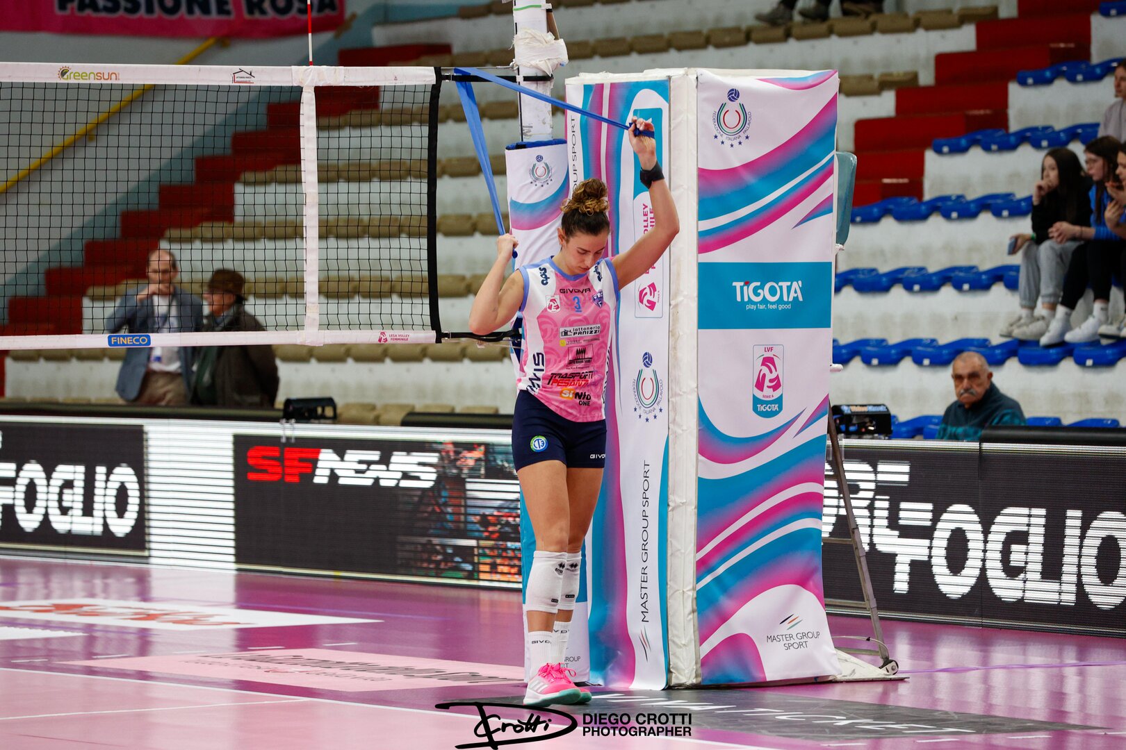 Secondo set. Smarzek manda out e apre la seconda frazione, 1-0 Vallefoglia, Aleksic poi mura l’opposta polacca e fa 2-0. Ci pensa Lohuis in fast a trovare il primo punto delle rosa, 1-2, Manfredini pareggia in primo tempo, 2-2, Aleksic riporta avanti le sue 3-2. Smarzek cerca il mani out e lo trova, 3 pari, e poi in parallela fa 4-3. Mingardi prova a piazzare il colpo ma il muro di Lee è devastante, 5-3 Vbc, time out Vallefoglia. Gran botta di Manfredini in primo tempo, 6-4. Le marchigiane pareggiano i conti ma la pipe di Lee è imperiosa, 8-7. Capitan Perinelli piazza il muro su Degradi e non si passa, 9-8, Lee poi passa tra le mani del muro e fa 10-8. Diagonale vincente di Lee che abbatte Giovannini e fa 12-10. Smarzek sale e picchia, 13-12, la pipe di Lee poi allunga, 14-12, l’errore di Mingardi allunga nuovamente e costringe coach Pistola al time out, 15-12 Vbc. Si torna in campo e Perinelli è attenta sotto rete, 16-12, Smarzek poi allunga, 17-12. Tutto braccio per Perinelli che non perdona, 19-13, il muro di Smarzek su Mingardi poi fa 20-13. Lohuis stacca ad un piede e trova il 22-15, la pipe di Perinelli poi piega le braccia di Panetoni e fa 23-15. Lee in diagonale sigla il 24-16, ma la battuta fuori di Lohuis annulla la prima palla set delle rosa. Aleksic trova l’ace del 19-24, time out per la Vbc. Si rientra in campo e Lee chiude 25-19. Top scorer: Lee 7, Degradi, Aleksic e Giovannini 3