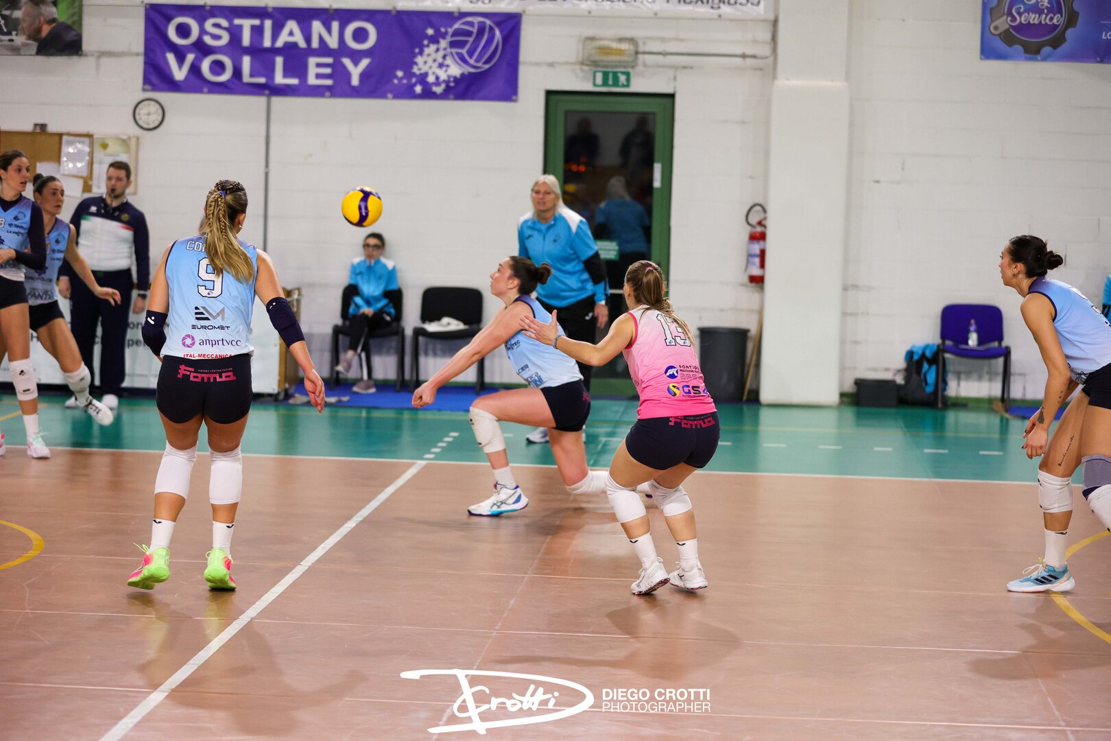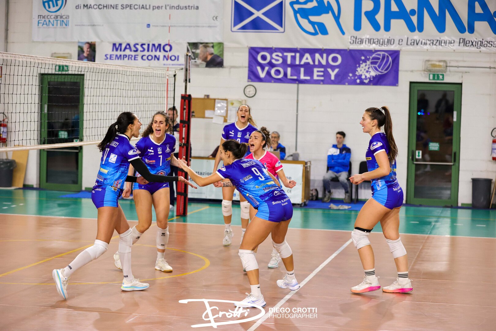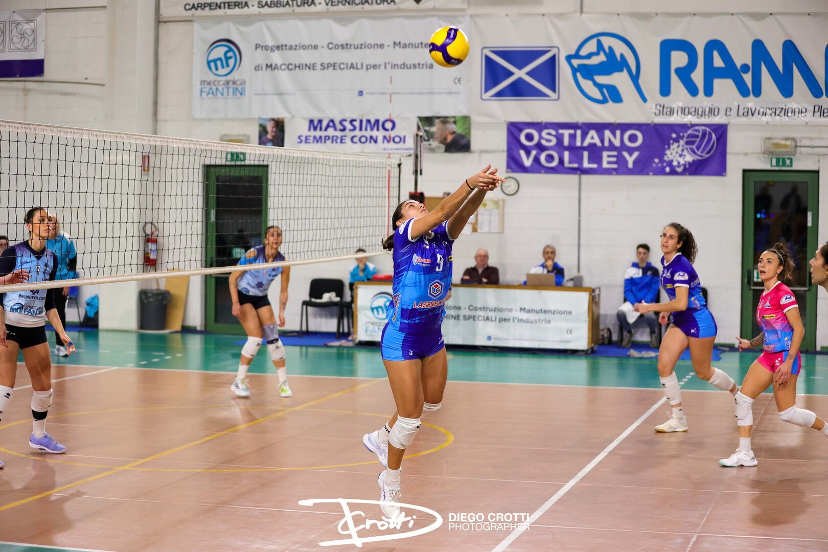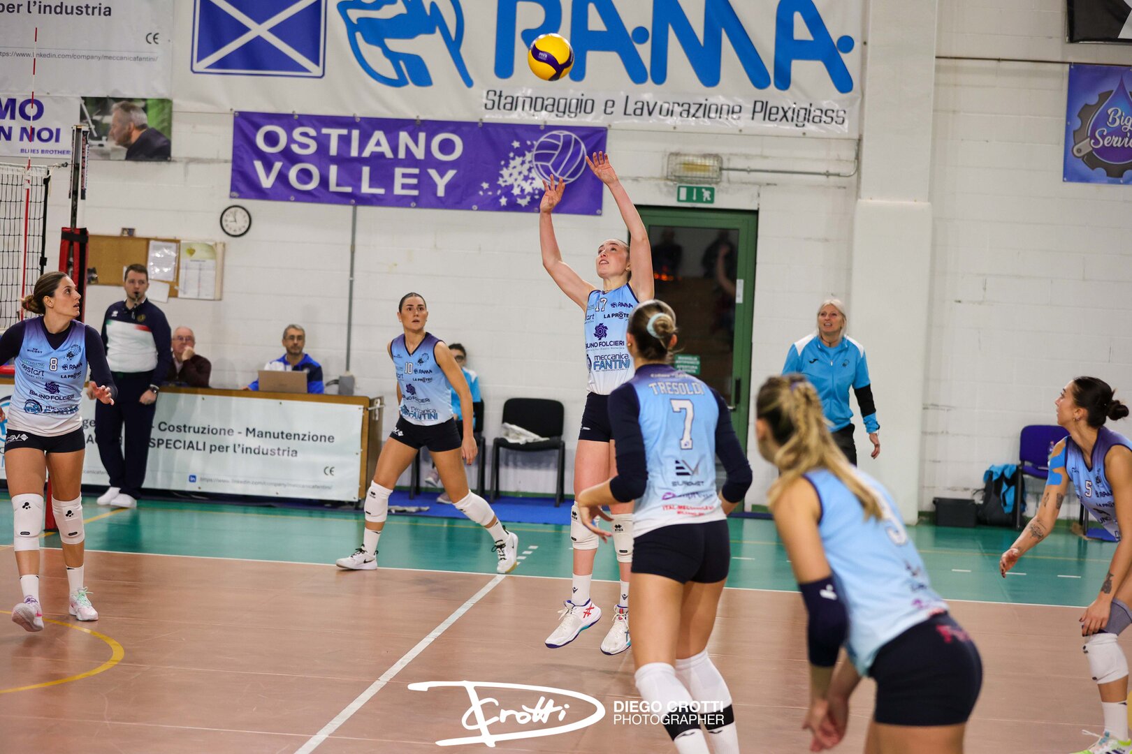 OSTIANO. Alle rosacelesti, ancora orfane di d'Este e Tosi, bastano tre set per domare la poco accomodante Lasersoft, reduce da due successi consecutivi, per riprendere il filo del successo e restare in scia delle posizioni di vertice e chiudono gli impegni interni dle 2025 con un successo
