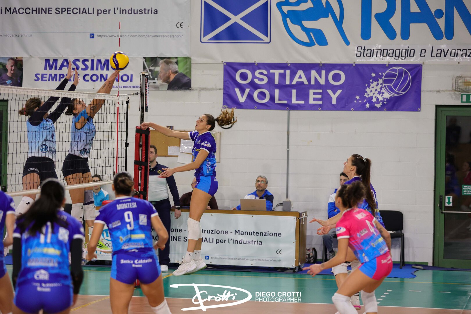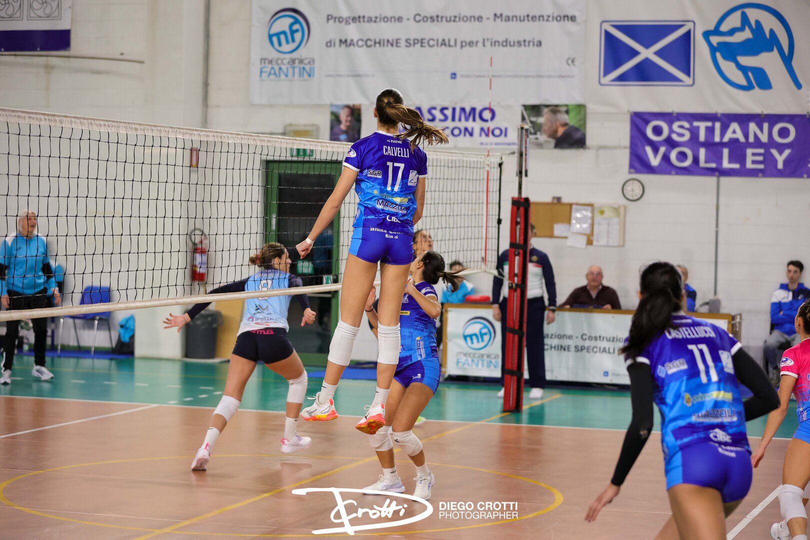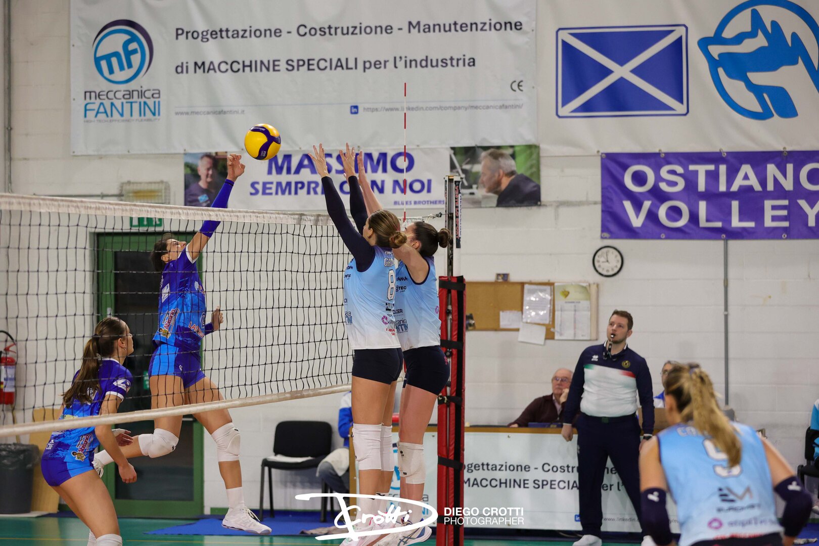 La Fantini Folcieri parte forte, 6-1, ma subisce il rientro di Riccione che accorcia sul 14-13. A metà parziale, trascinate dagli attacchi di Comotti e Vidi, le padrone di casa allungano sul 17-13 ed amministrano il vantaggio sino al 25-20. Il secondo parziale resta in equilibrio sino al 10-10, Ostiano mette la freccia sul 14-13, trovando la spallata decisiva per chiudere, 25-20. La sinfonia con cambia nel terzo set, la Fantini Folcieri trova il break ed allunga sino a prendere l'intera posta in palio.