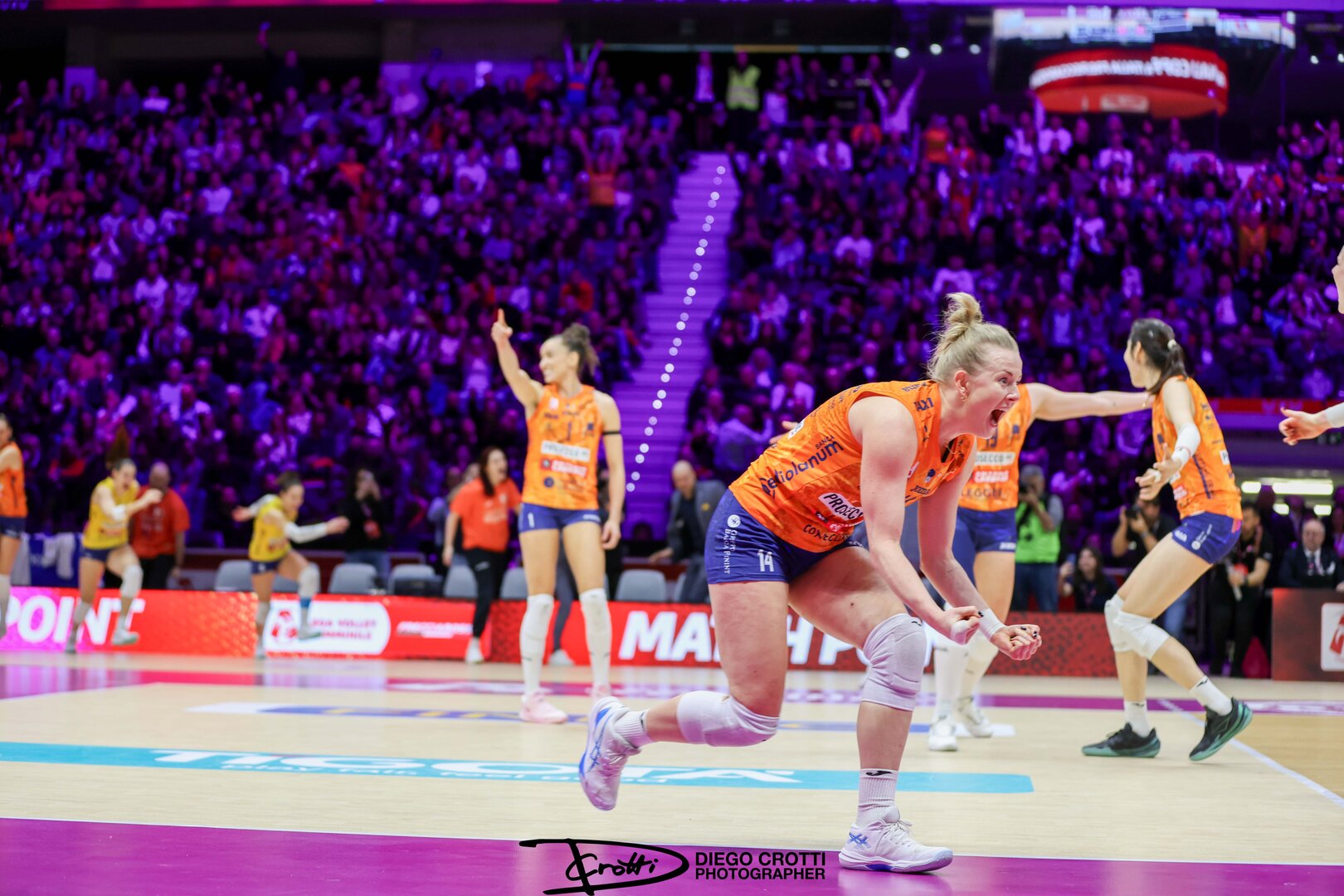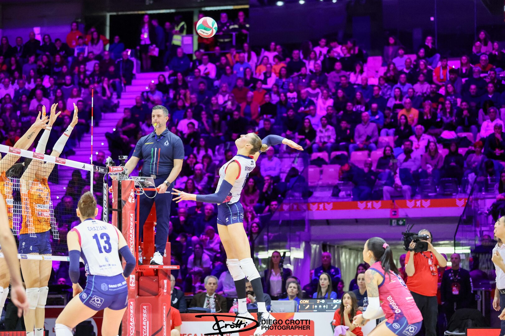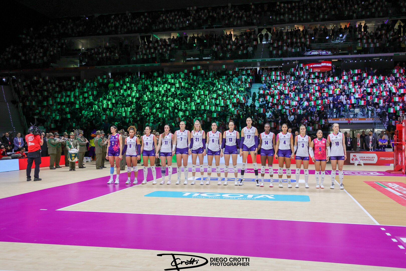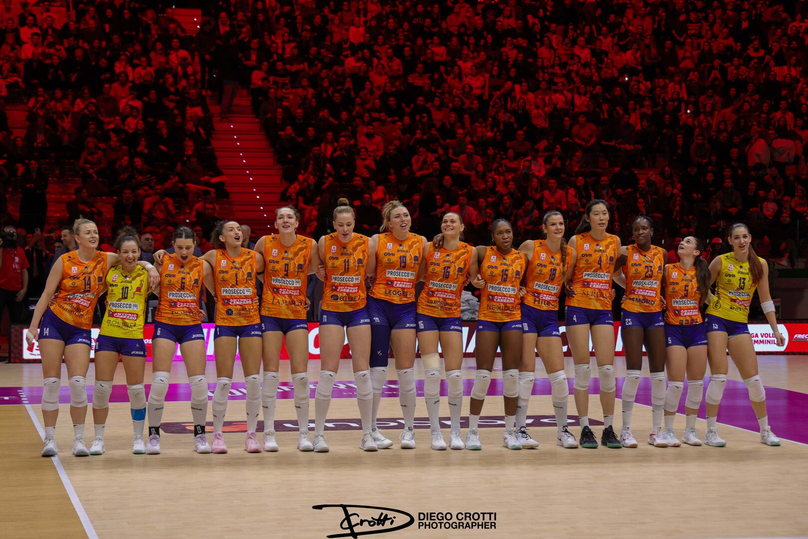 Prosecco Doc A. Carraro Imoco Conegliano: Gabi 22, Zhu Ting 13, Scogliamillo, Ewert n.e., Lubian n.e., De Gennaro (L1), Haak 20, Munarini (L2), Wolosz 3, Adigwe, Daalderop, Chirichella 7, Fahr 6, Sillah n.e.. All.: Santarelli.
