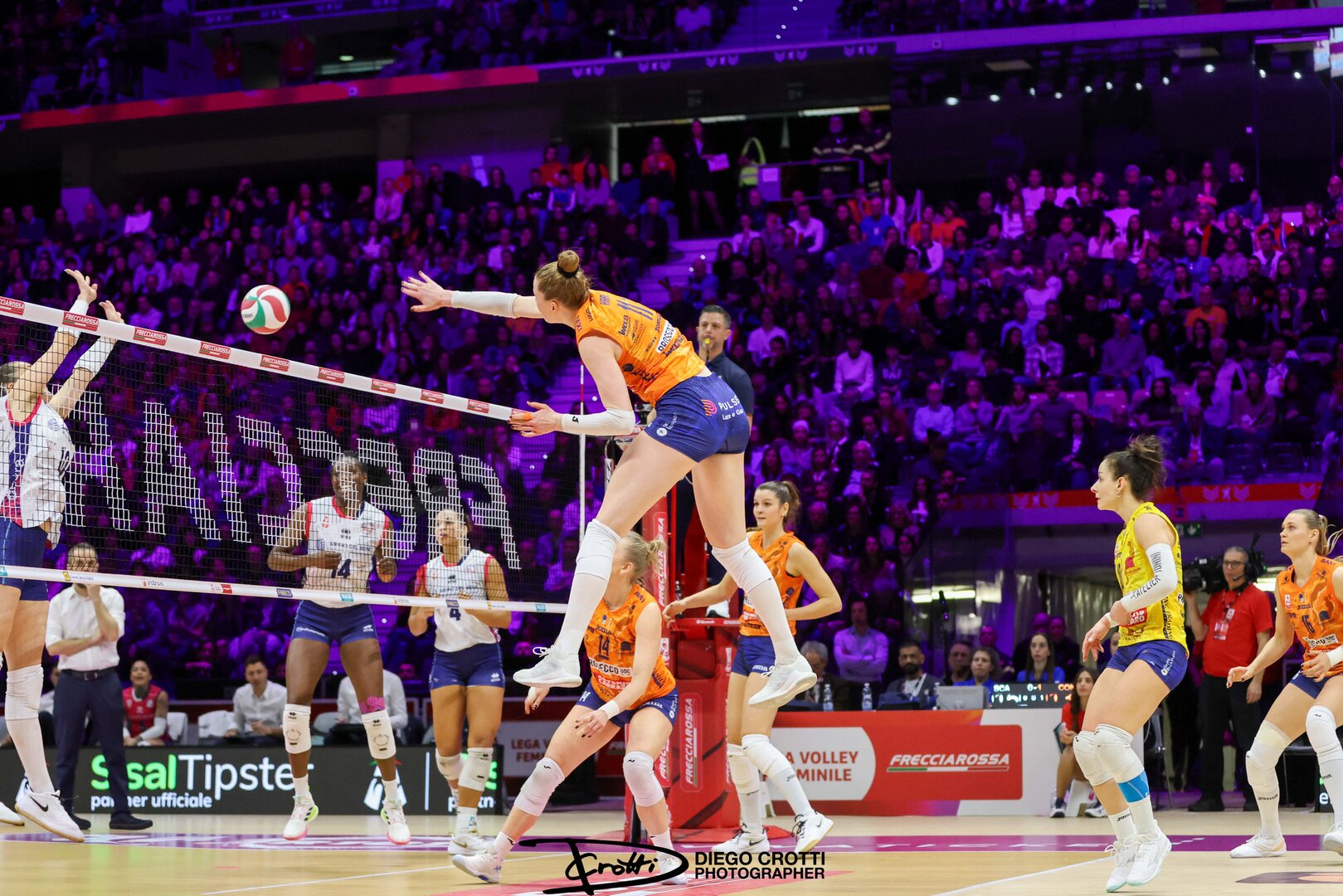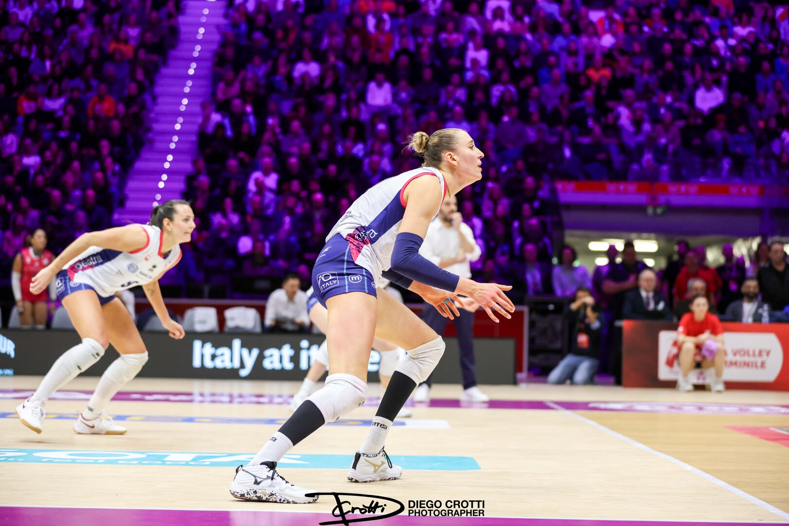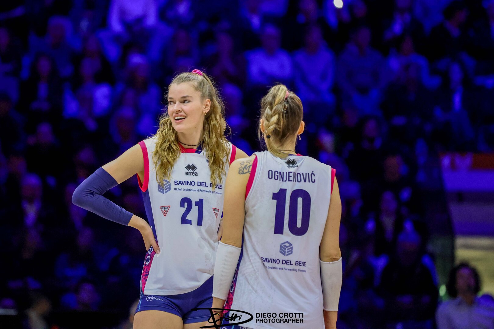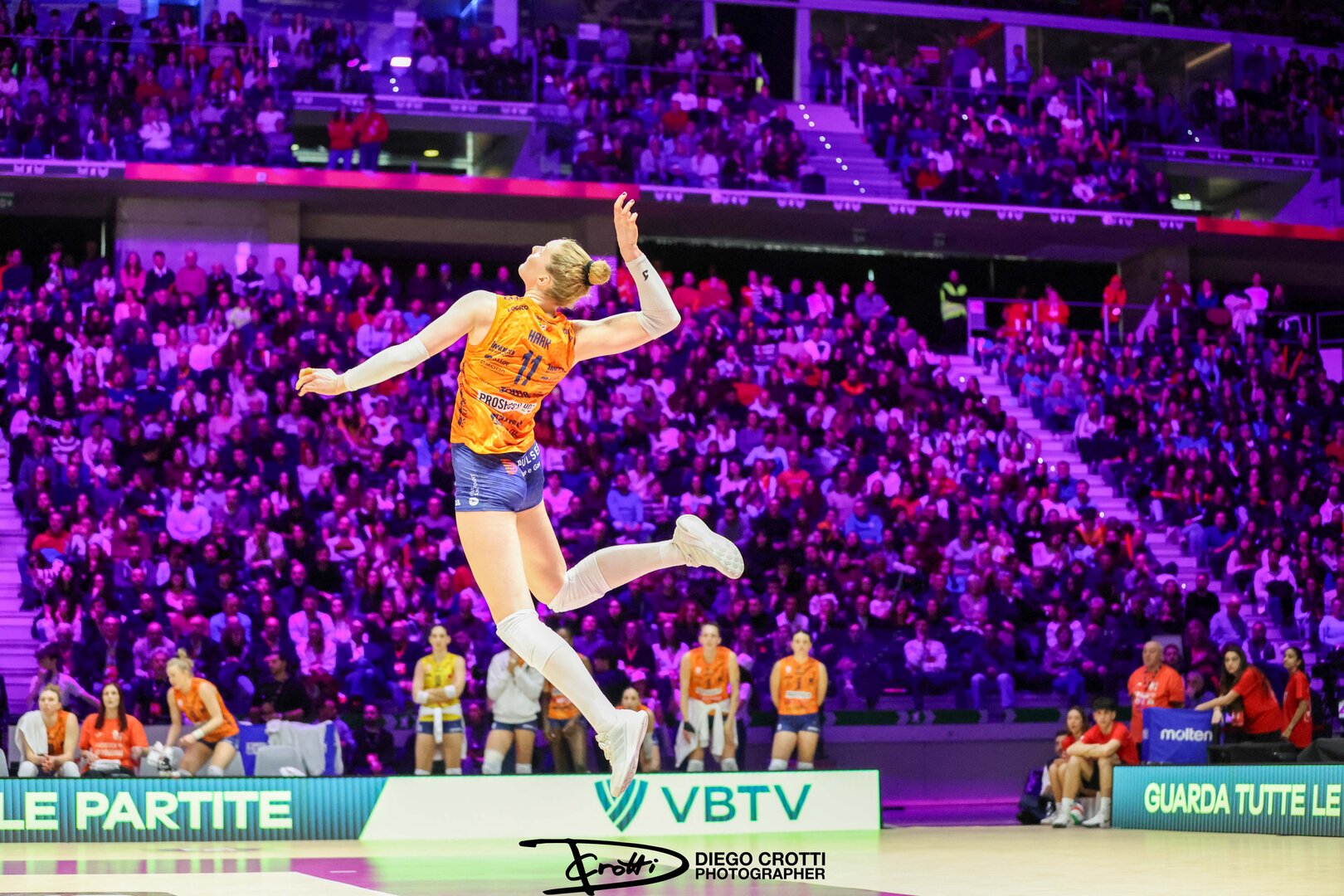 Prosecco Doc A. Carraro Imoco Conegliano: Gabi 22, Zhu Ting 13, Scogliamillo, Ewert n.e., Lubian n.e., De Gennaro (L1), Haak 20, Munarini (L2), Wolosz 3, Adigwe, Daalderop, Chirichella 7, Fahr 6, Sillah n.e.. All.: Santarelli.