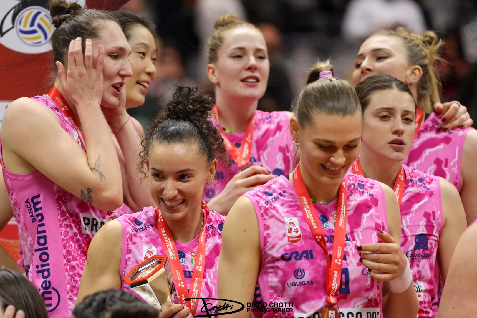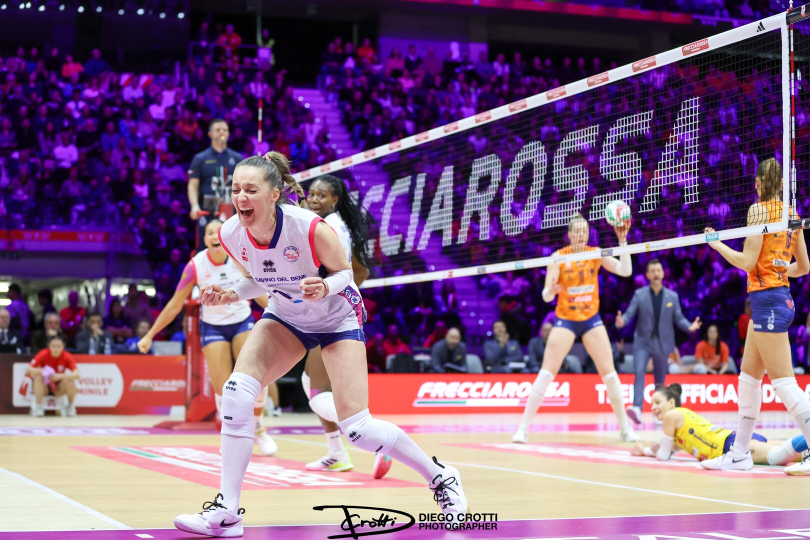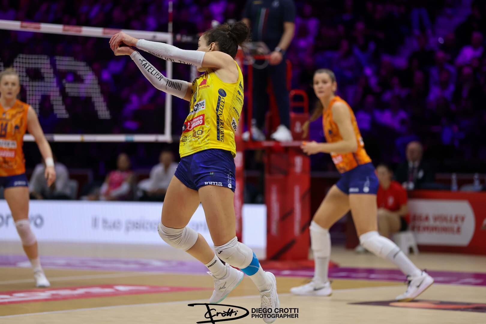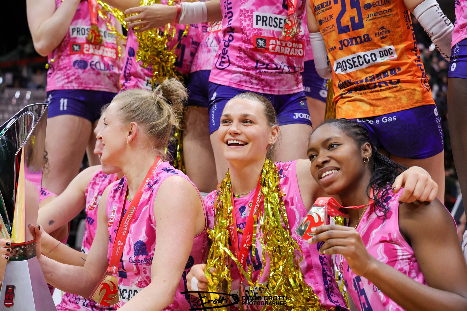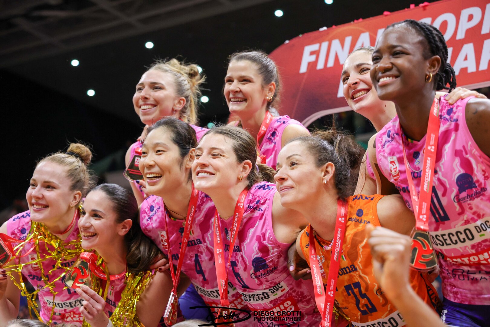 Prosecco Doc A. Carraro Imoco Conegliano: Gabi 22, Zhu Ting 13, Scogliamillo, Ewert n.e., Lubian n.e., De Gennaro (L1), Haak 20, Munarini (L2), Wolosz 3, Adigwe, Daalderop, Chirichella 7, Fahr 6, Sillah n.e.. All.: Santarelli.