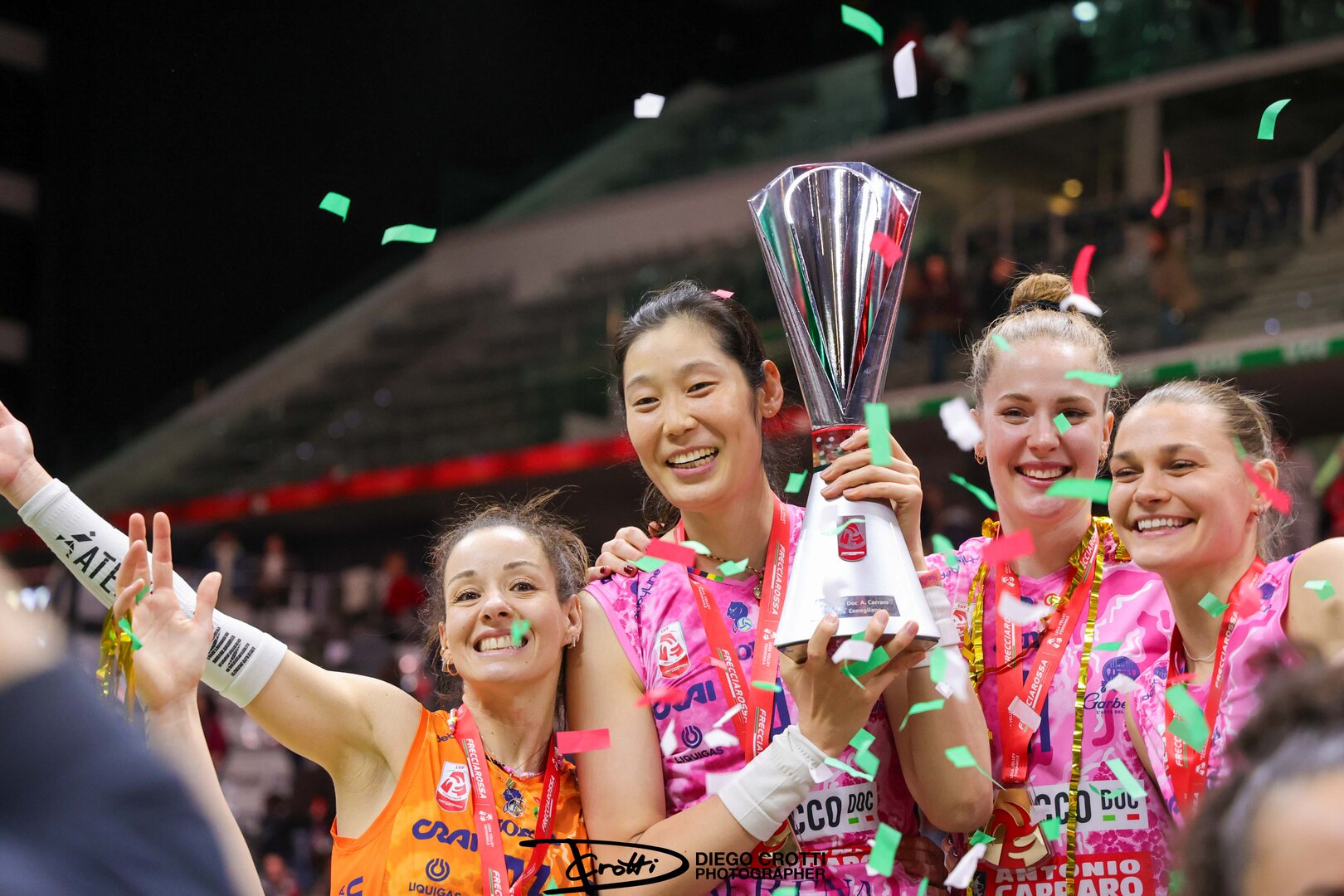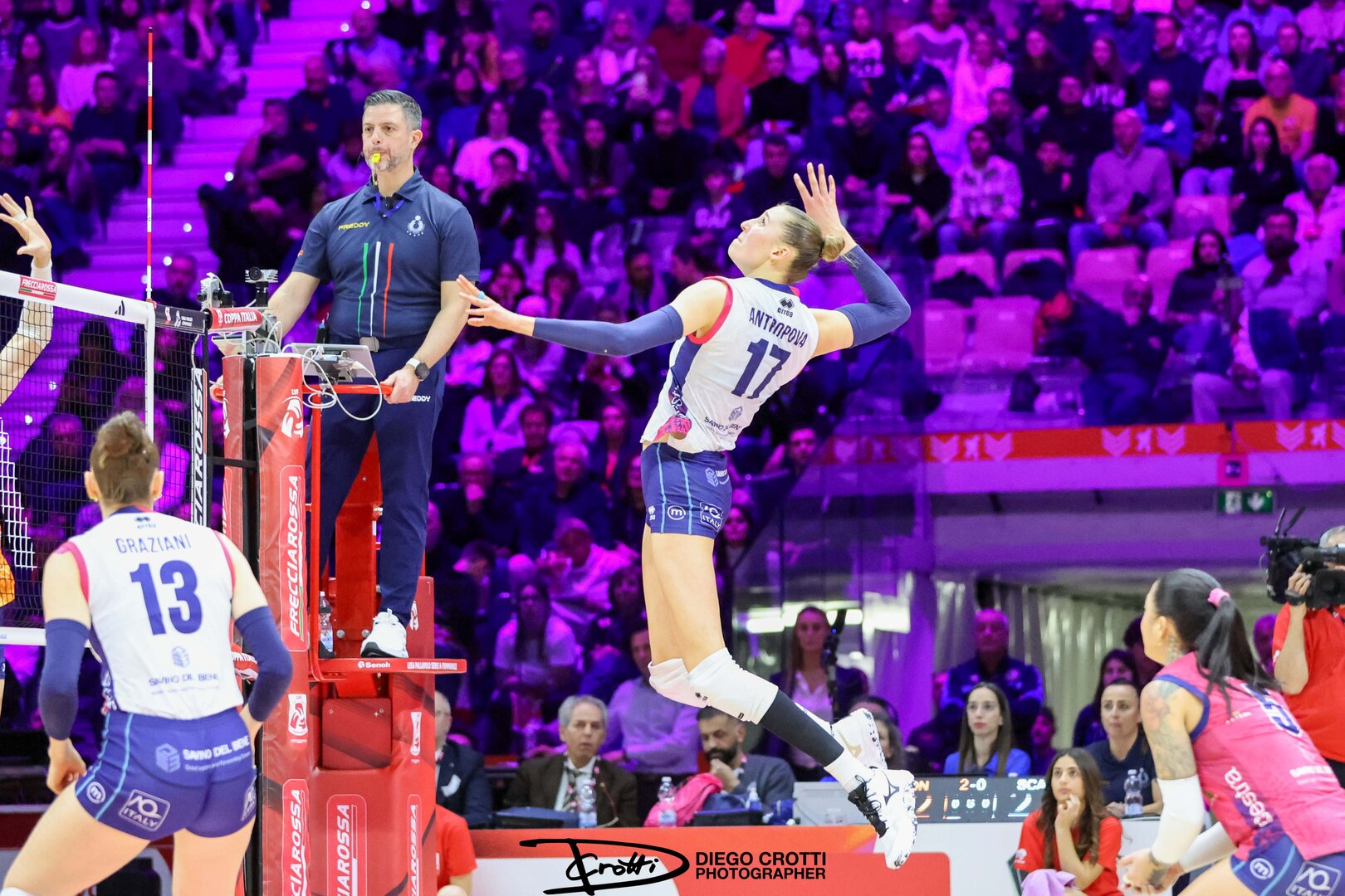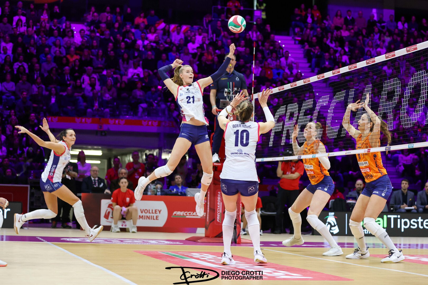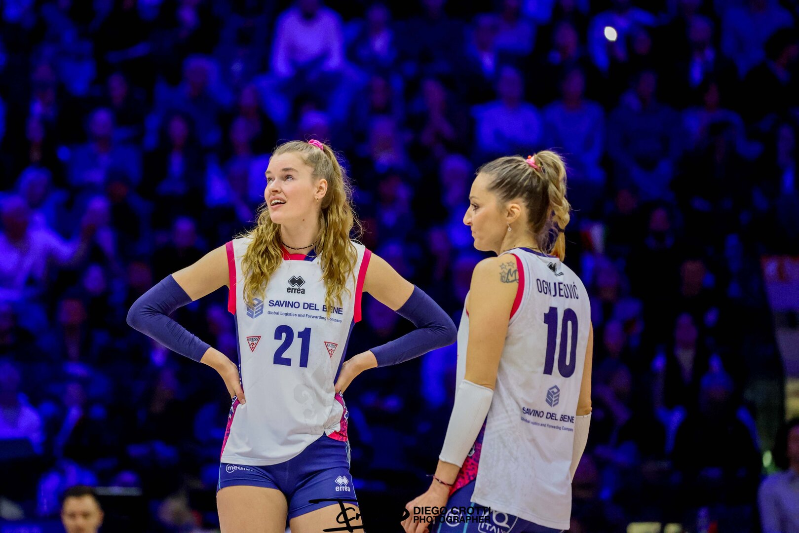 Prosecco Doc A. Carraro Imoco Conegliano: Gabi 22, Zhu Ting 13, Scogliamillo, Ewert n.e., Lubian n.e., De Gennaro (L1), Haak 20, Munarini (L2), Wolosz 3, Adigwe, Daalderop, Chirichella 7, Fahr 6, Sillah n.e.. All.: Santarelli.