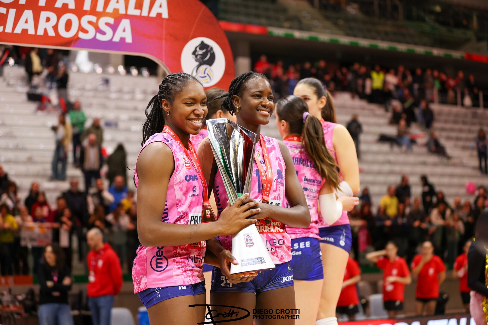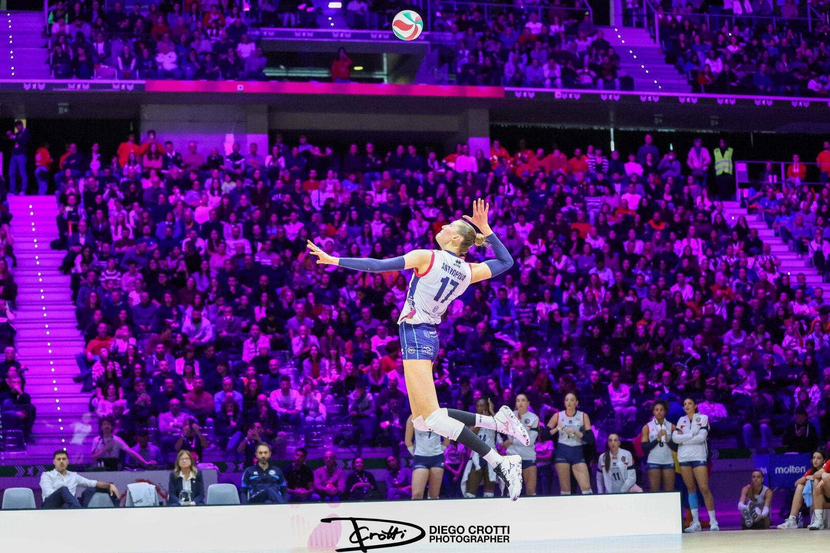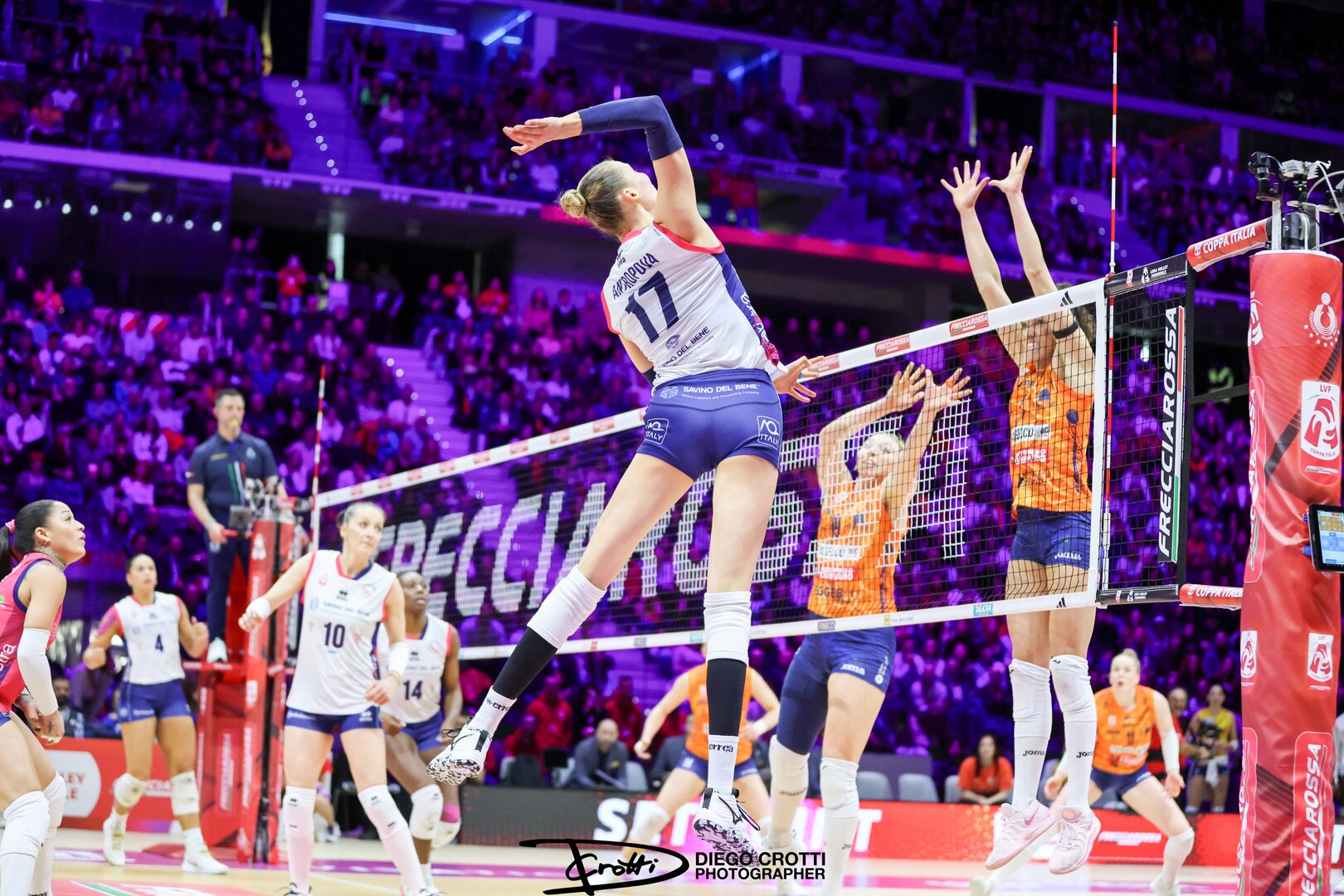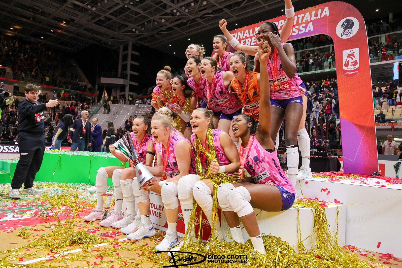 Prosecco Doc A. Carraro Imoco Conegliano: Gabi 22, Zhu Ting 13, Scogliamillo, Ewert n.e., Lubian n.e., De Gennaro (L1), Haak 20, Munarini (L2), Wolosz 3, Adigwe, Daalderop, Chirichella 7, Fahr 6, Sillah n.e.. All.: Santarelli.