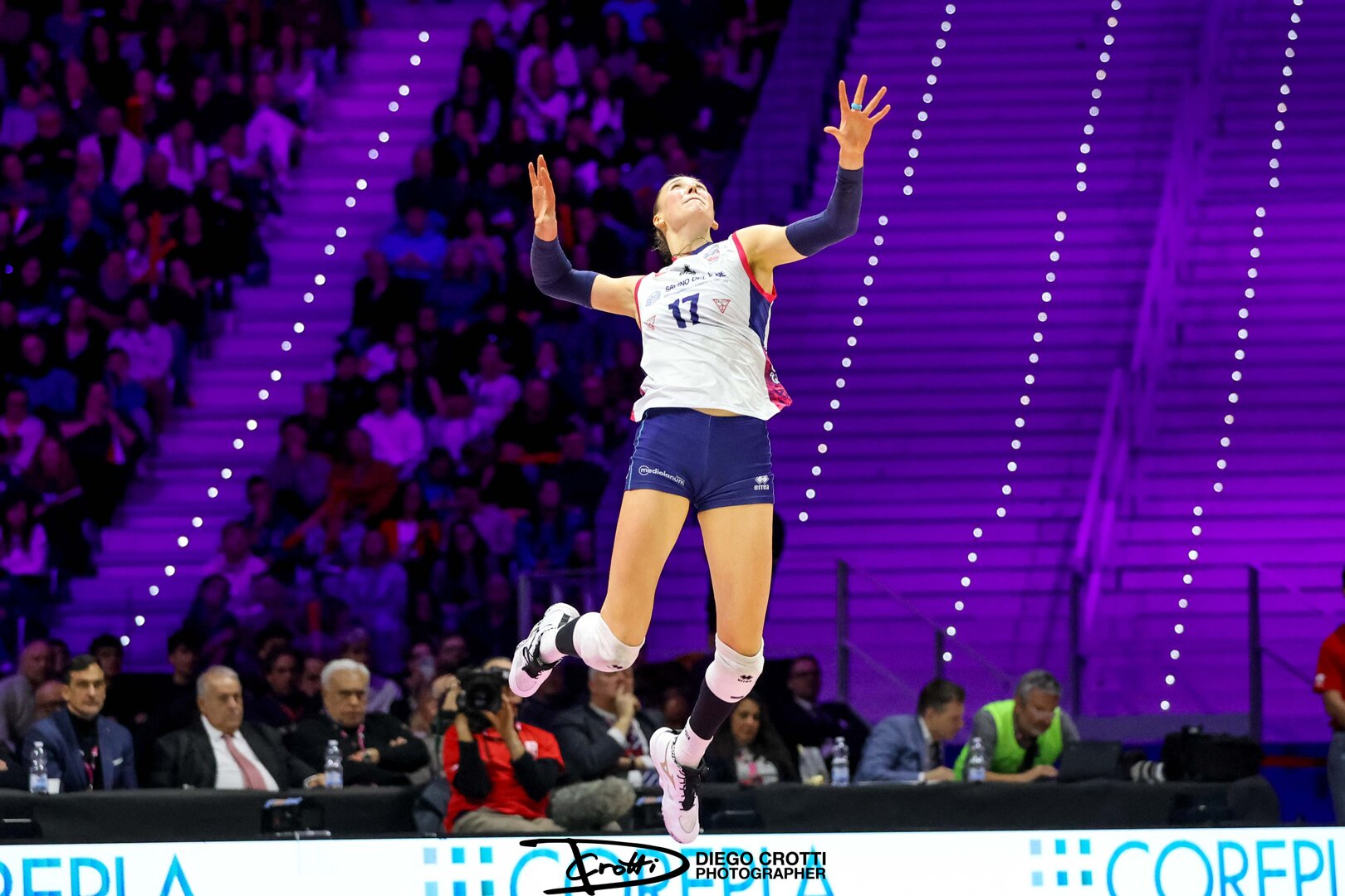 Coach Gaspari risponde con il 6+1 composto da Ognjenovic al palleggio e Antropova da opposta. Skinner e Bosetti come schiacciartici titolari, Nwakalor e Weitzel da centrali. Il ruolo di libero è affidato a Castillo.
