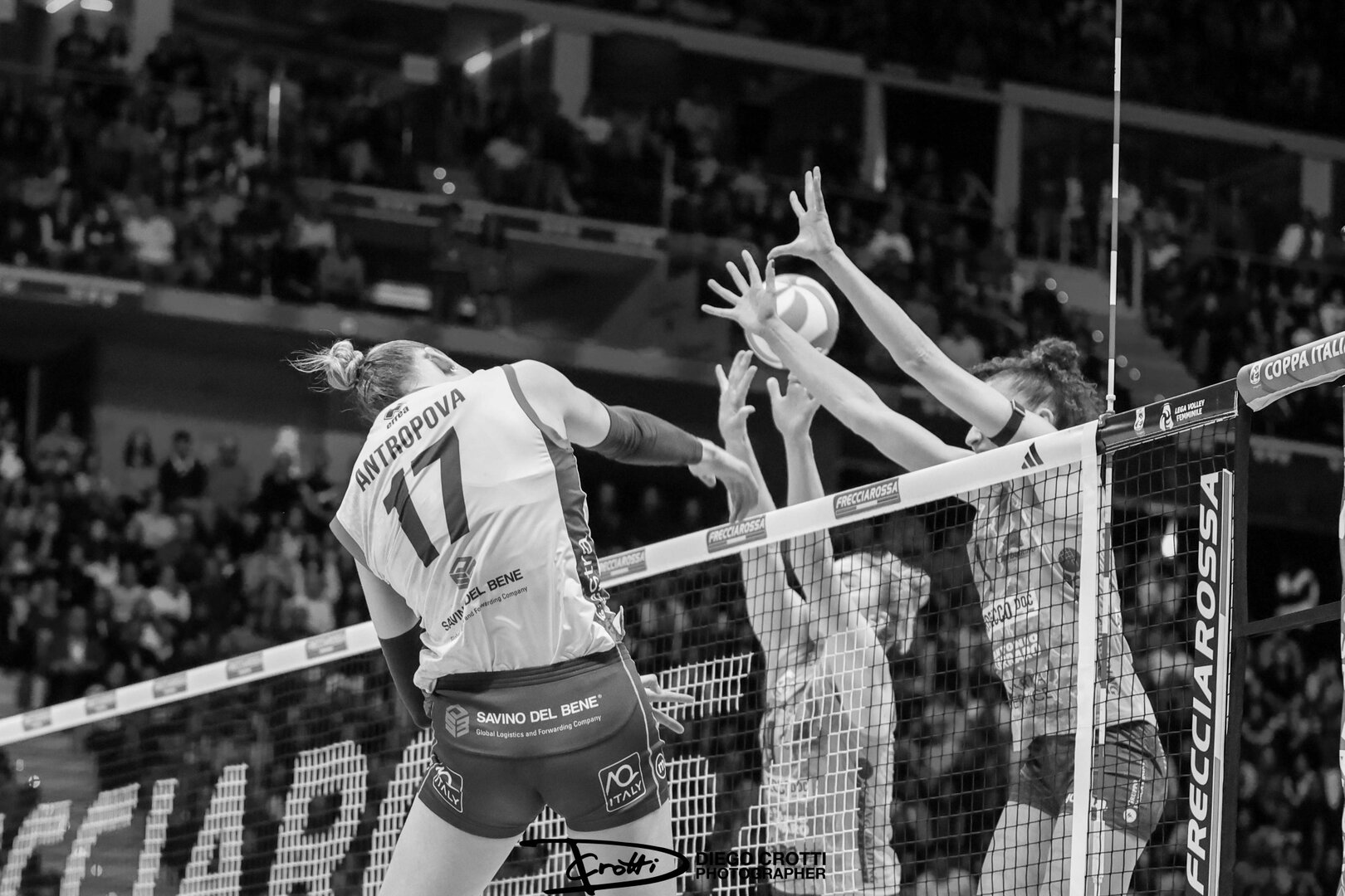 Savino Del Bene Volley: Traballi (L2) n.e., Bechis, Skinner 17, Castillo (L1), Ruddins 5, Franklin, Ribechi, Bosetti 8, Ognjenovic 1, Mancini n.e., Graziani 1, Nwakalor 2, Antropova 16, Weitzel 8. All.: Gaspari.